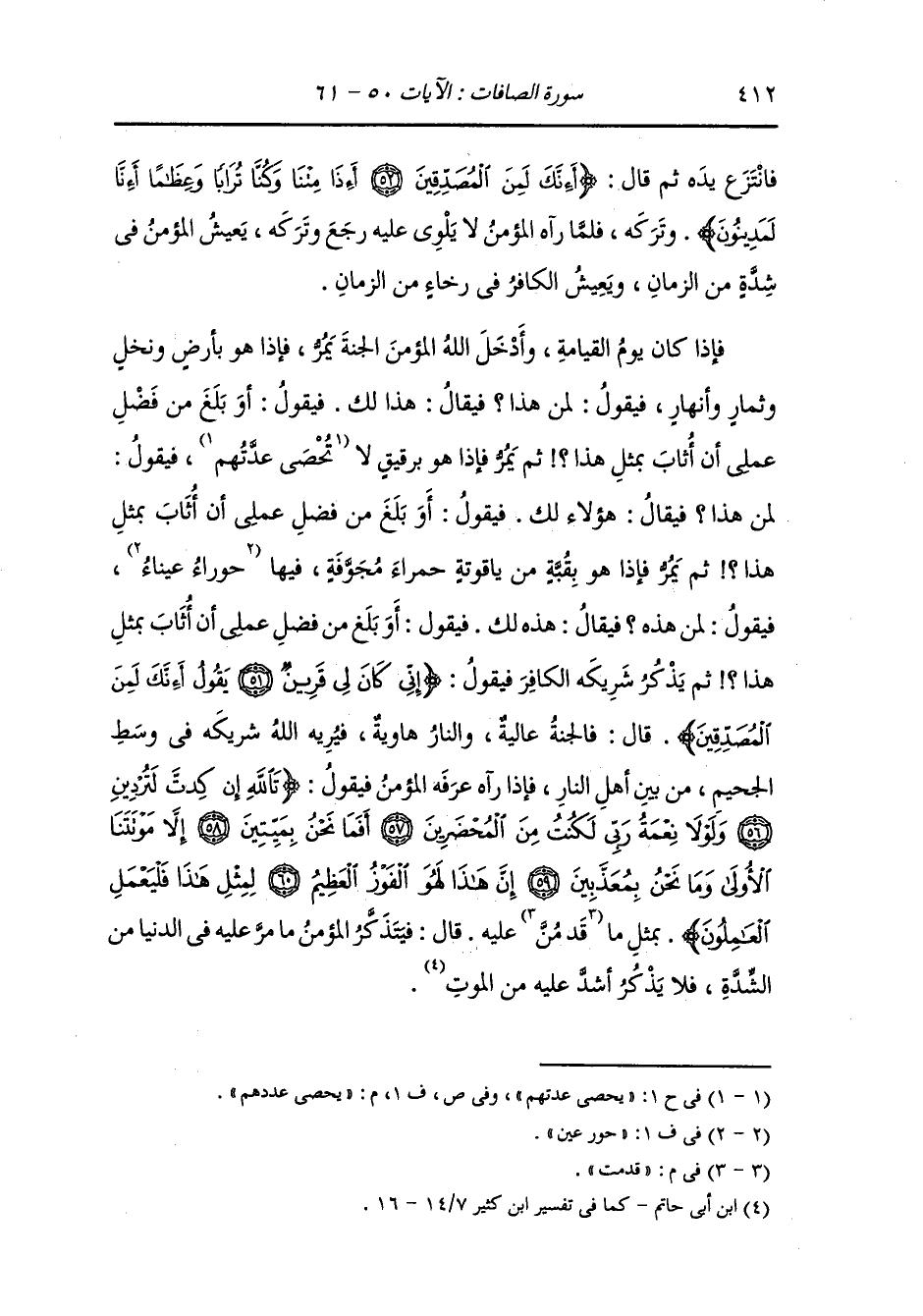 بقوته فقال رجل : يا عبد الله أتؤجر نفسك مشاهرة ، شهرا بشهر تقوم على دواب لي قال : نعم ، فكان صاحب الدواب يغدو كل يوم ينظر إلى دوابه فإذا رأى منها دابة ضامرة أخذ برأسه فوجأ عنقه ثم يقول له : سرقت شعير هذه البارحة ، فلما رأى المؤمن الشدة قال : لآتين شريكي الكافر فلأعملن في أرضه يطعمني هذه الكسرة يوما بيوم ويكسيني هذين الثوبين إذا بليا ، فأنطلق يريده فانتهى إلى بابه وهم ممس فإذا قصر في السماء وإذا حوله البوابون فقال لهم : استأذنوا لي صاحب هذا القصر فإنكم إن فعلتم ذلك سره فقالوا له : إنطلق فإن كنت صادقا فنم في ناحية فإذا أصبحت فتعرض له فانطلق المؤمن فألقى نصف كسائه تحته ونصفه فوقه ثم نام فلما أصبح أتى شريكه فتعرض له فخرج شريكه وهو راكب فلما رآه عرفه فوقف فسلم عليه وصافحه ثم قال له : ألم تأخذ من المال مثل ما أخذت فأين مالك قال : لا تسألني عنه قال : فما جاء بك قال : جئت أعمل في أرضك هذه تطعمني هذه الكسرة يوما بيوم وتكسوني هذين الثوبين إذا بليا قال : لا ترى مني خيرا حتى تخبرني ما صنعت في مالك قال : أقرضته من الملأ الوفي قال : من قال : الله ربي وهو مصافحه