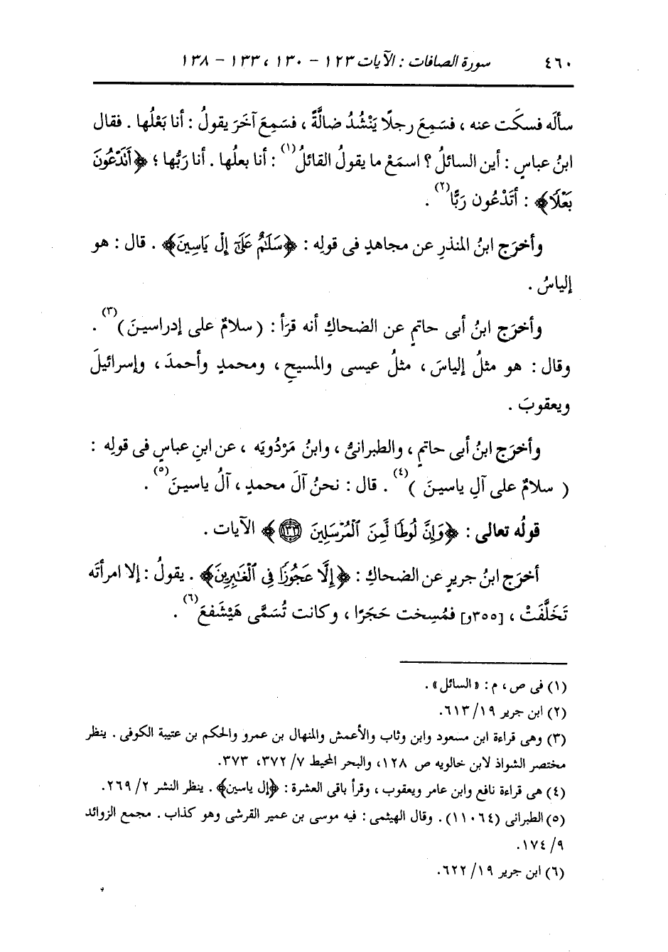 وأخرج ابن أبي حاتم عن الضحاك رضي الله عنه قال : مر رجل يقول : من يعرف البقرة فقال رجل : أنا بعلها فقال له ابن عباس رضي الله عنهما : تزعم أنك زوج البقرة قال الرجل : أما سمعت قول الله {أتدعون بعلا وتذرون أحسن الخالقين} قال : تدعون بعلا وأنا ربكم فقال له ابن عباس رضي الله عنهما : صدقت.