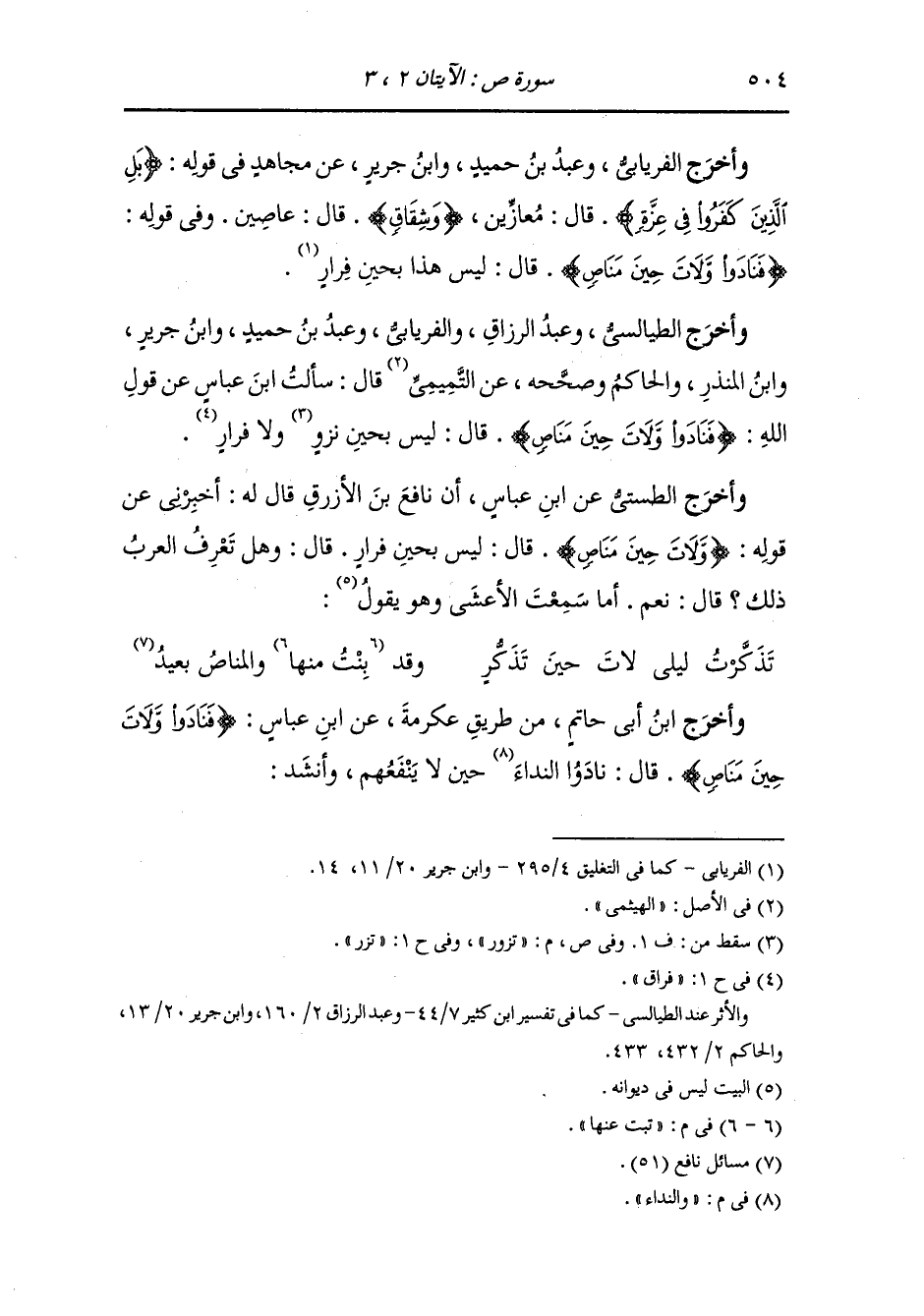 وأخرج عَبد بن حُمَيد ، وَابن جَرِير ، وَابن الأنباري في المصاحف عن قتادة {بل الذين كفروا في عزة} قال : ههنا وقع القسم {في عزة وشقاق} قال : في حمية وفراق.
