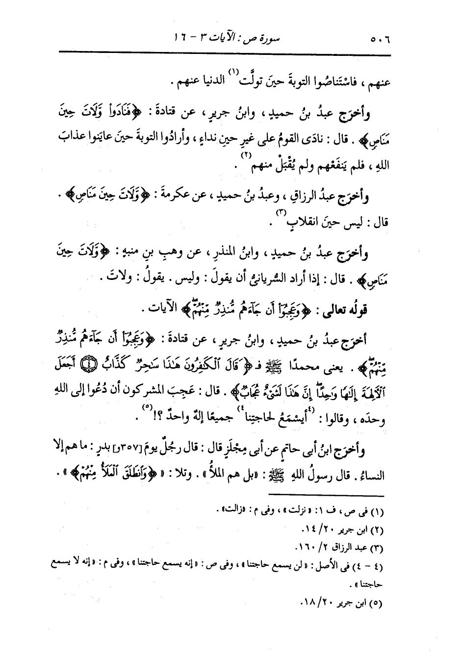 وأخرج عَبد بن حُمَيد عن الحسن رضي الله عنه {ولات حين مناص} قال : وليس حين نداء.