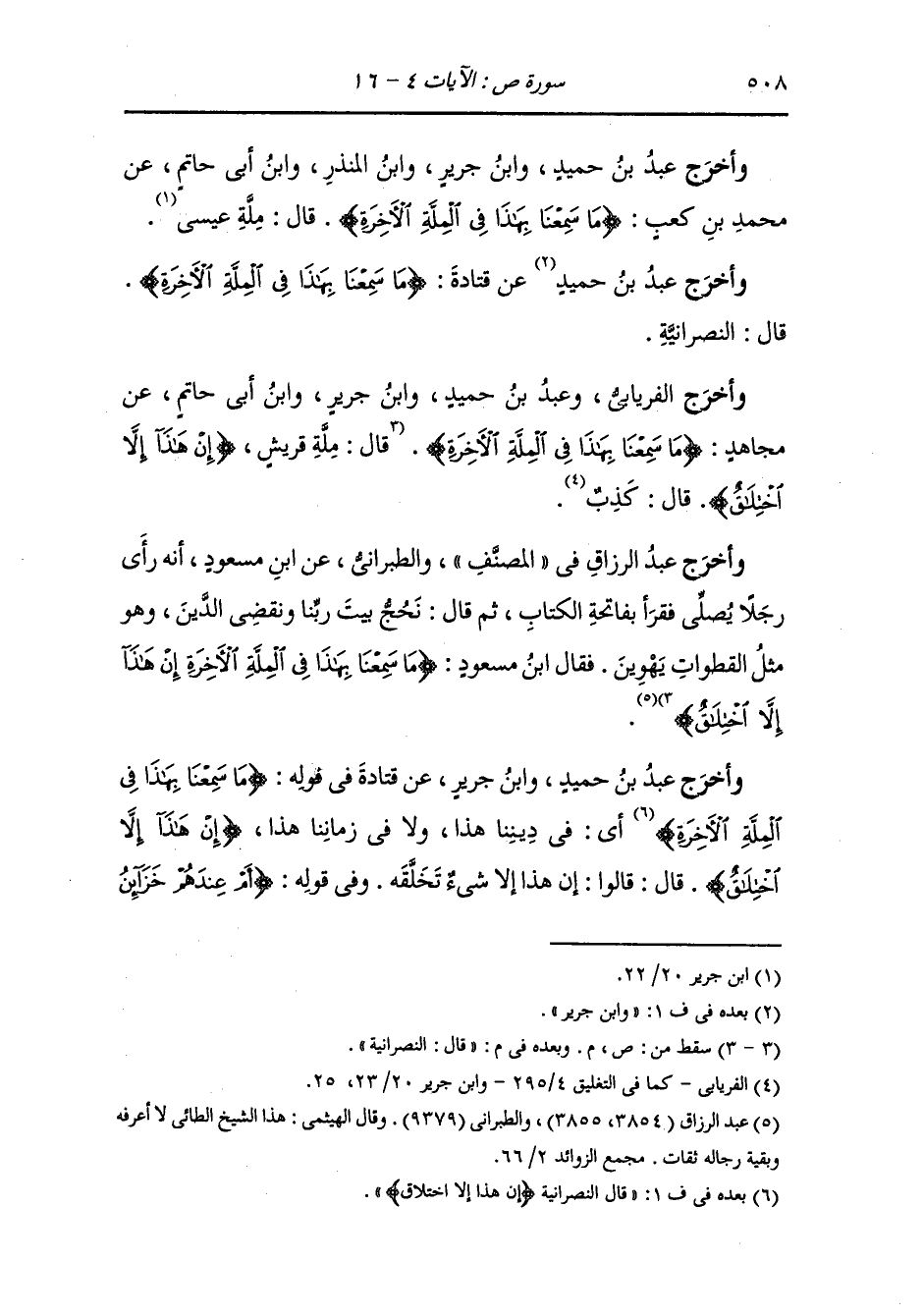 وأخرج عَبد بن حُمَيد ، وَابن جَرِير ، وَابن المنذر عن مجاهد في قوله {وانطلق الملأ منهم أن امشوا واصبروا} قال : هو عقبة بن أبي معيط ، وفي قوله {ما سمعنا بهذا في الملة الآخرة} قال : النصرانية قالوا : لو كان هذا القرآن حقا لأخبرتنا به النصارى.