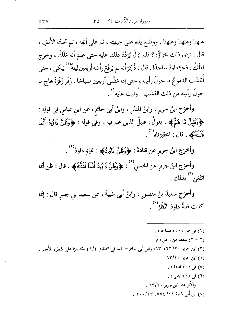وأخرج ابن جرير عن ابن مسعود رضي الله عنه قال : ما زاد داود عليه السلام على أن قال : انزل لي عنها.