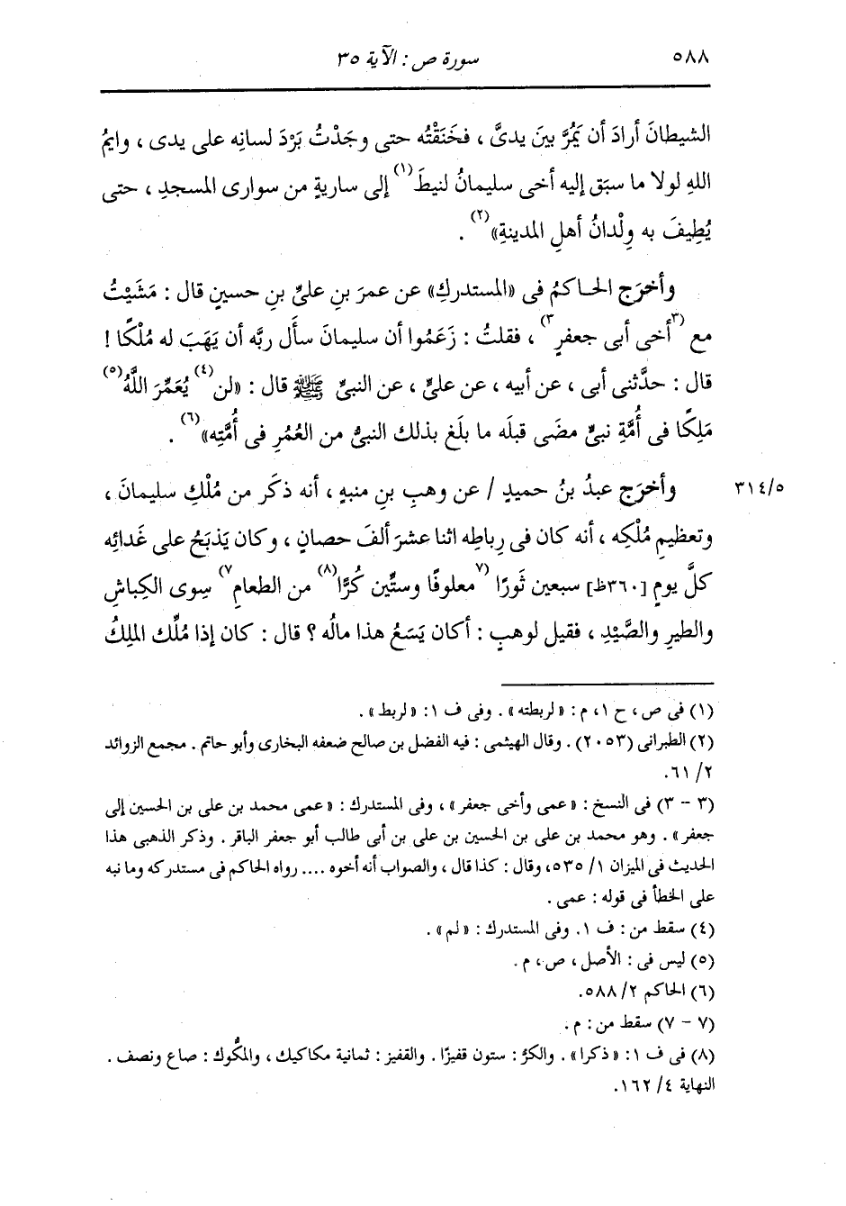 الشيطان أراد أن يمر بين يدي فخنقته حتى وجدت برد لسانه على يدي ، وأيم الله لولا ما سبق إليه أخي سليمان لربطته إلى سارية من سواري المسجد حتى به ولدان أهل المدينة.