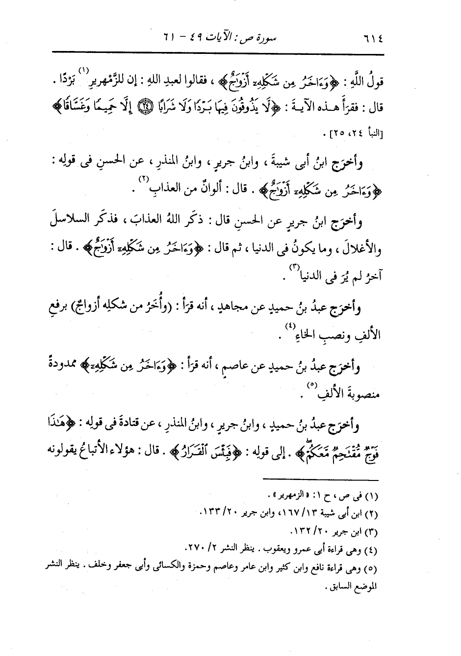 قول الله {وآخر من شكله أزواج} فقالوا لعبد الله : إن للزمهرير بردا فقرأ هذه الآية (لا يذوقون فيها بردا ولا شرابا إلا حميما وغساقا) (النبأ 24 - 25).