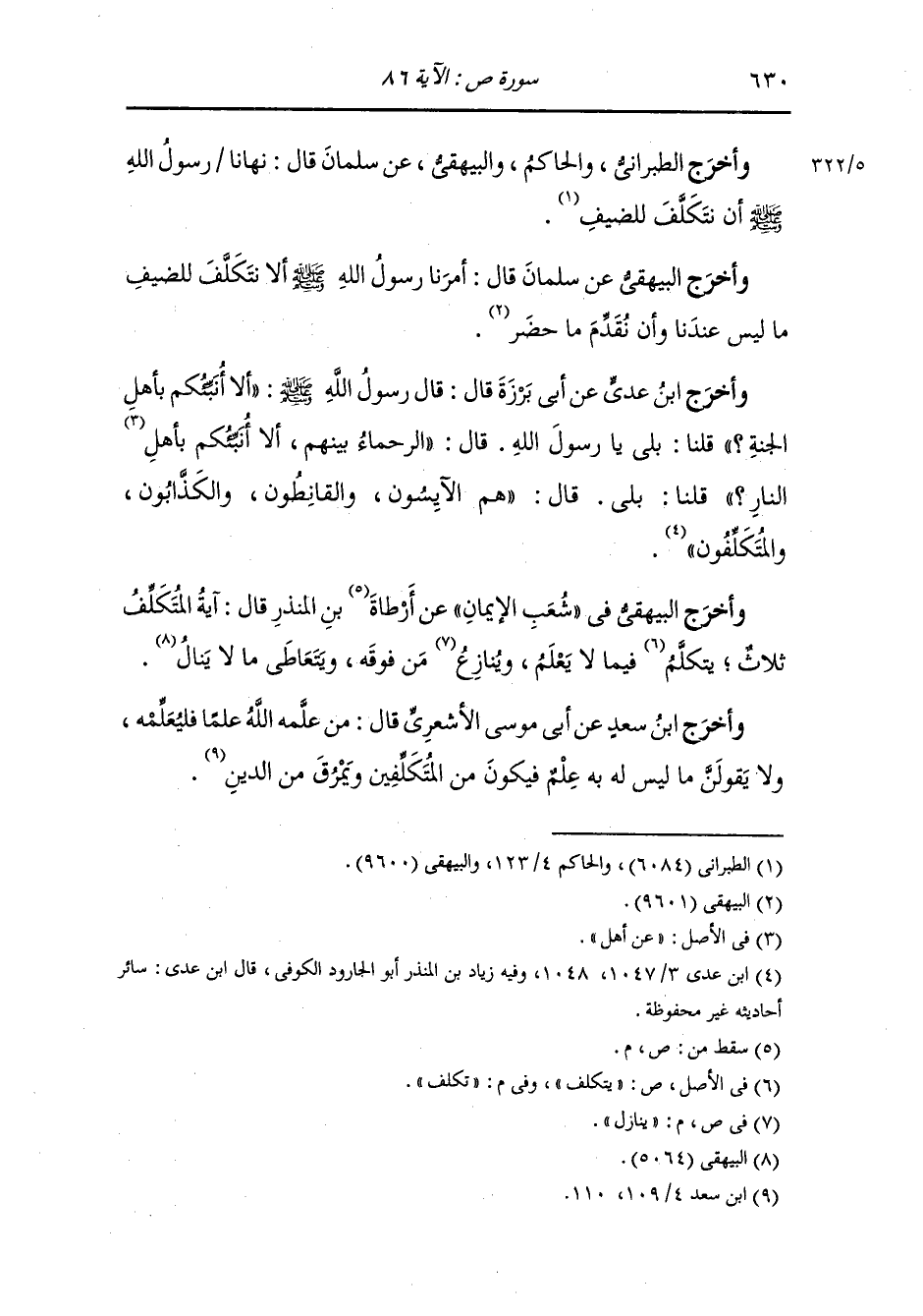 وأخرج البيهقي في شعب الإيمان عن ابن المنذر قال : آية المتكلف ثلاث ، تكلف فيما لا يعلم وينازل من فوقه ويتعاطى ما لا ينال.