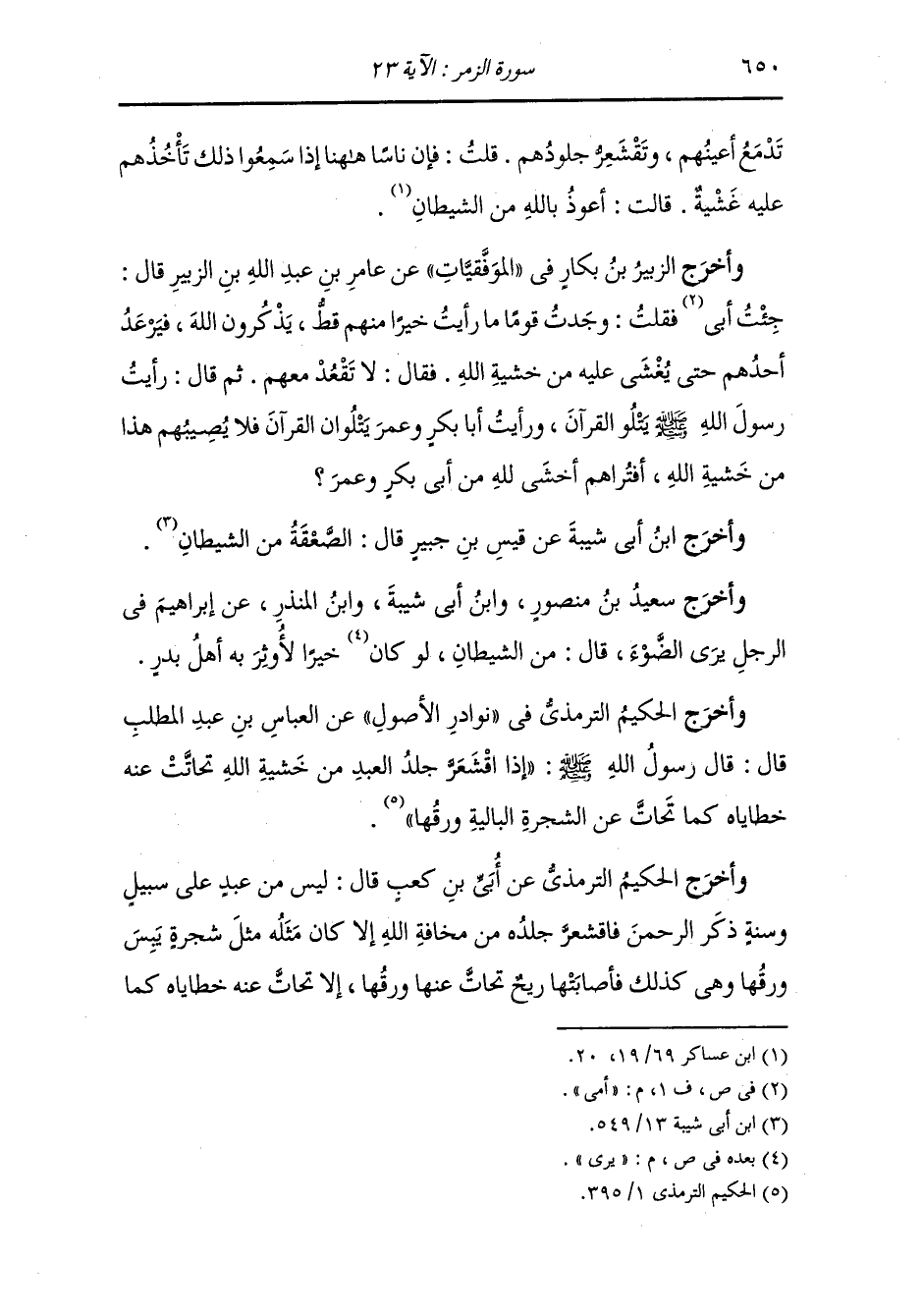 وأخرج الحكيم الترمذي في نوادر الأصول عن العباس بن عبد المطلب رضي الله عنه : إذا اقشعر جلد العبد من خشية الله تحاتت عنه خطاياه كما