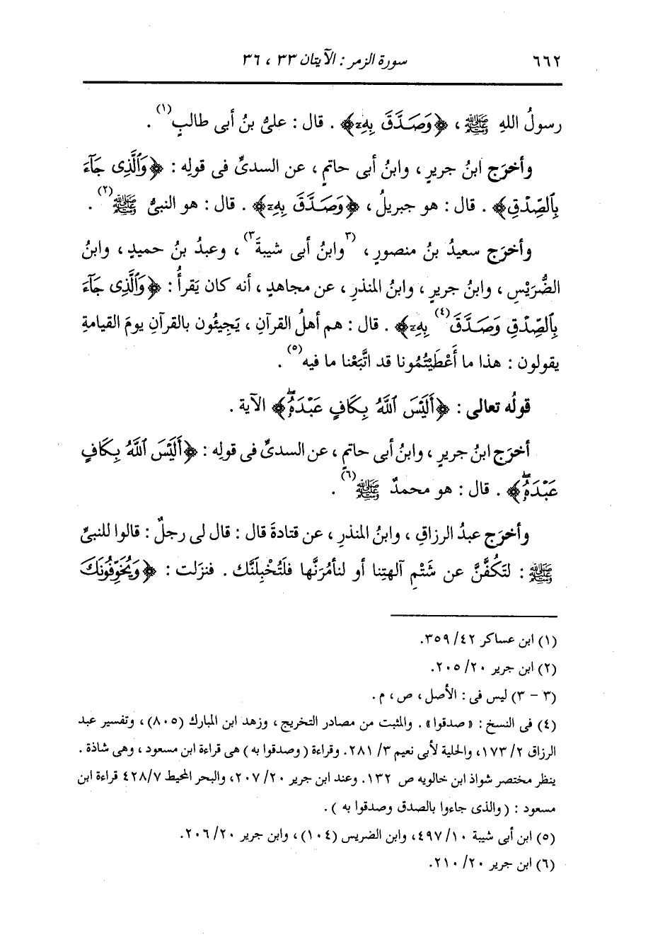 أَخْرَج ابن جرير ، وَابن أبي حاتم عن السدي في قوله {أليس الله بكاف عبده} قال : محمد صلى الله عليه وسلم.