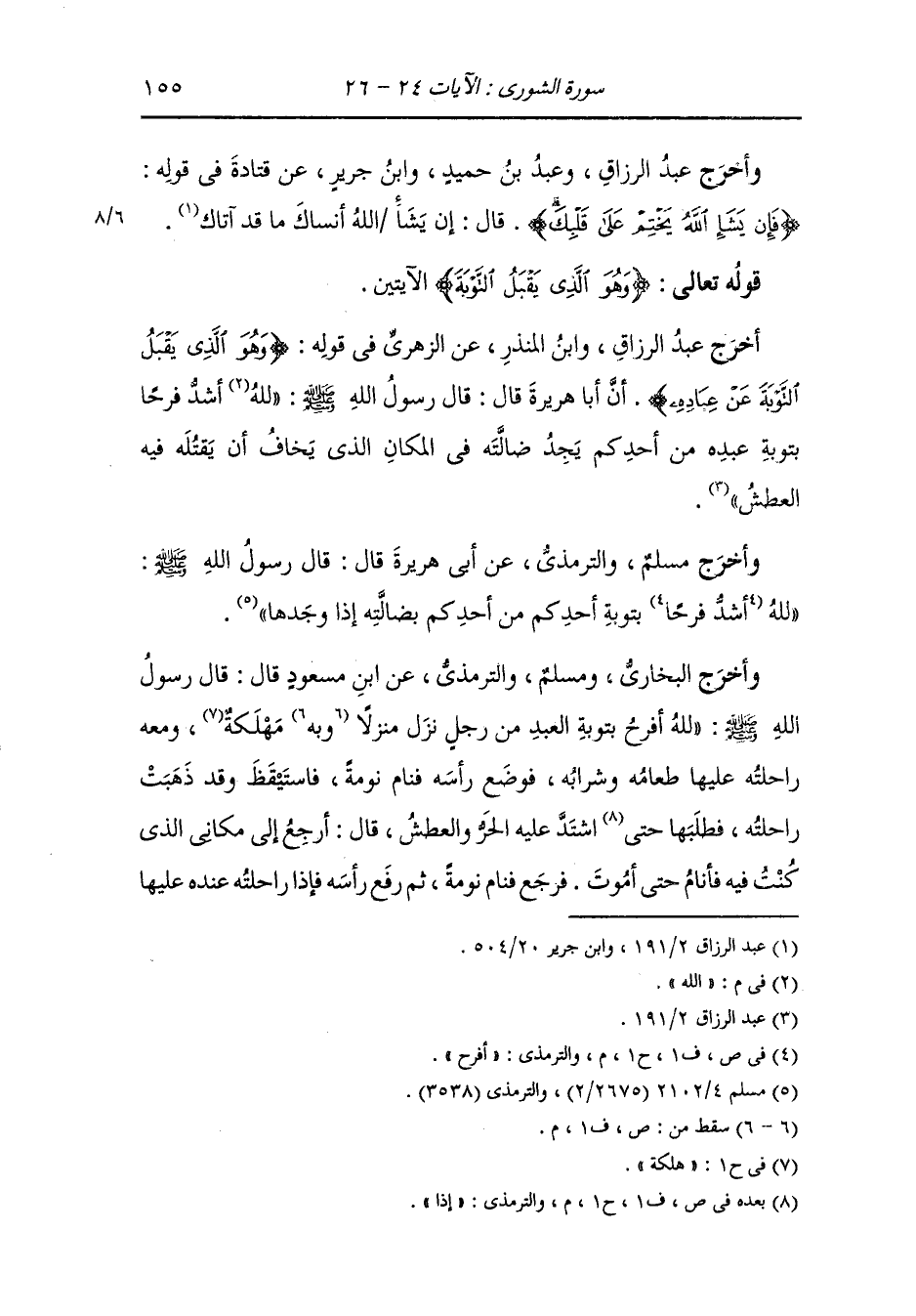زاده وطعامه وشرابه فالله أشد فرحا بتوبة العبد المؤمن من هذا براحلته وزاده.