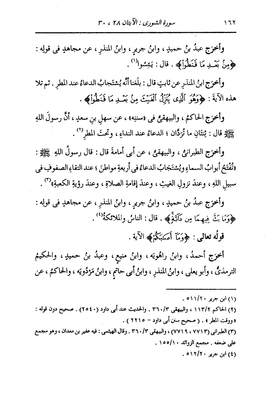 علي بن أبي طالب رضي الله عنه قال : ألا أخبركم بأفضل آية في كتاب الله حدثنا بها رسول الله صلى الله عليه وسلم {وما أصابكم من مصيبة فبما كسبت أيديكم ويعفو عن كثير} وسأفسرها لك يا علي ما أصابك من مرض أو عقوبة أو بلاء في الدنيا فبما كسبت أيديكم والله أكرم من أن يثني عليكم العقوبة في الآخرة وما عفا الله عنه في الدنيا فالله أكرم من أن يعود بعد عفوه.