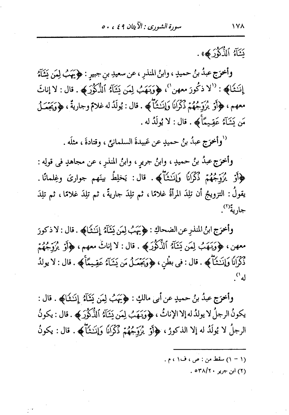 وأخرج ابن جرير ، وَابن أبي حاتم عن ابن عباس {ويجعل من يشاء عقيما} قال : لا يلقح.