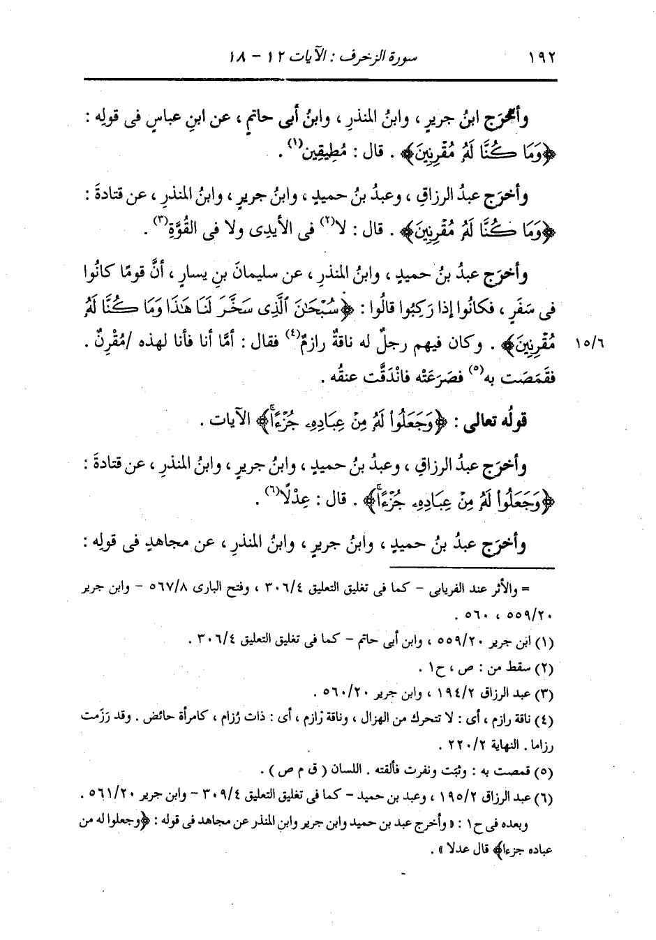 وأخرج الفريابي ، وعَبد بن حُمَيد ، وَابن جَرِير عن مجاهد رضي الله عنه {أو من ينشأ في الحلية} قال : الجواري جعلتموهن للرحمن ولدا {كيف تحكمون} الصافات الآية 154.