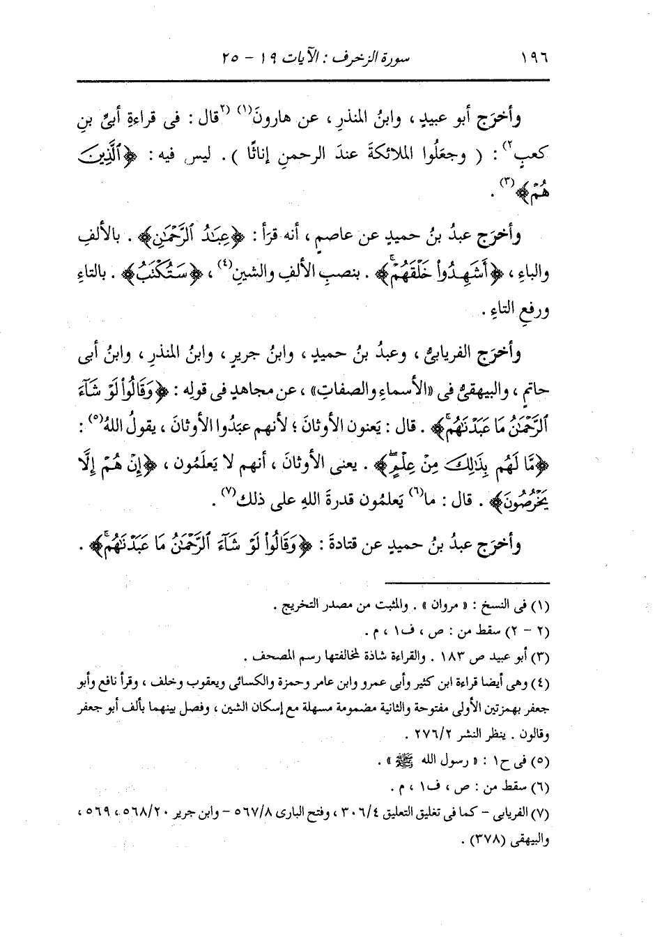 وَأخرَج عَبد بن حُمَيد ، وَابن جَرِير عن قتادة {بل قالوا إنا وجدنا آباءنا على أمة وإنا على آثارهم مهتدون} قال : قد قال : ذلك مشركو قريش : إنا وجدنا آباءنا على دين وإنا متبعوهم على ذلك.