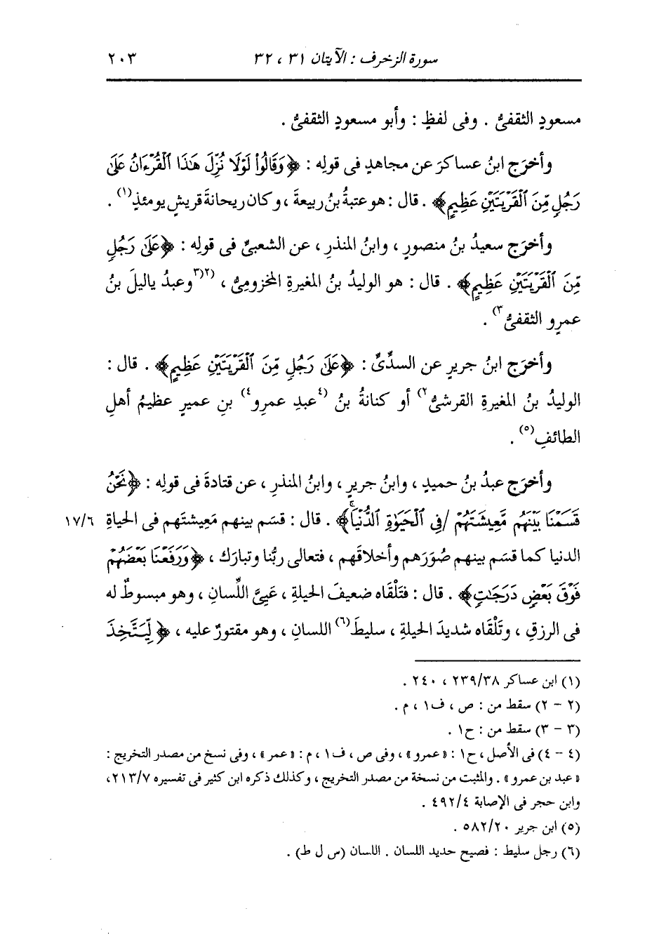 وأخرج ابن جرير ، وَابن المنذر ، وَابن أبي حاتم عن ابن عباس رضي الله عنهما {ولولا أن يكون الناس أمة واحدة} الآية يقول : لولا أن أجعل الناس كلهم كفارا لجعلت لبيوت الكفار سقفا من فضة {ومعارج} من فضة وهي درج {عليها يظهرون} يصعدون إلى الغرف وسرر فضة {وزخرفا} وهو الذهب.