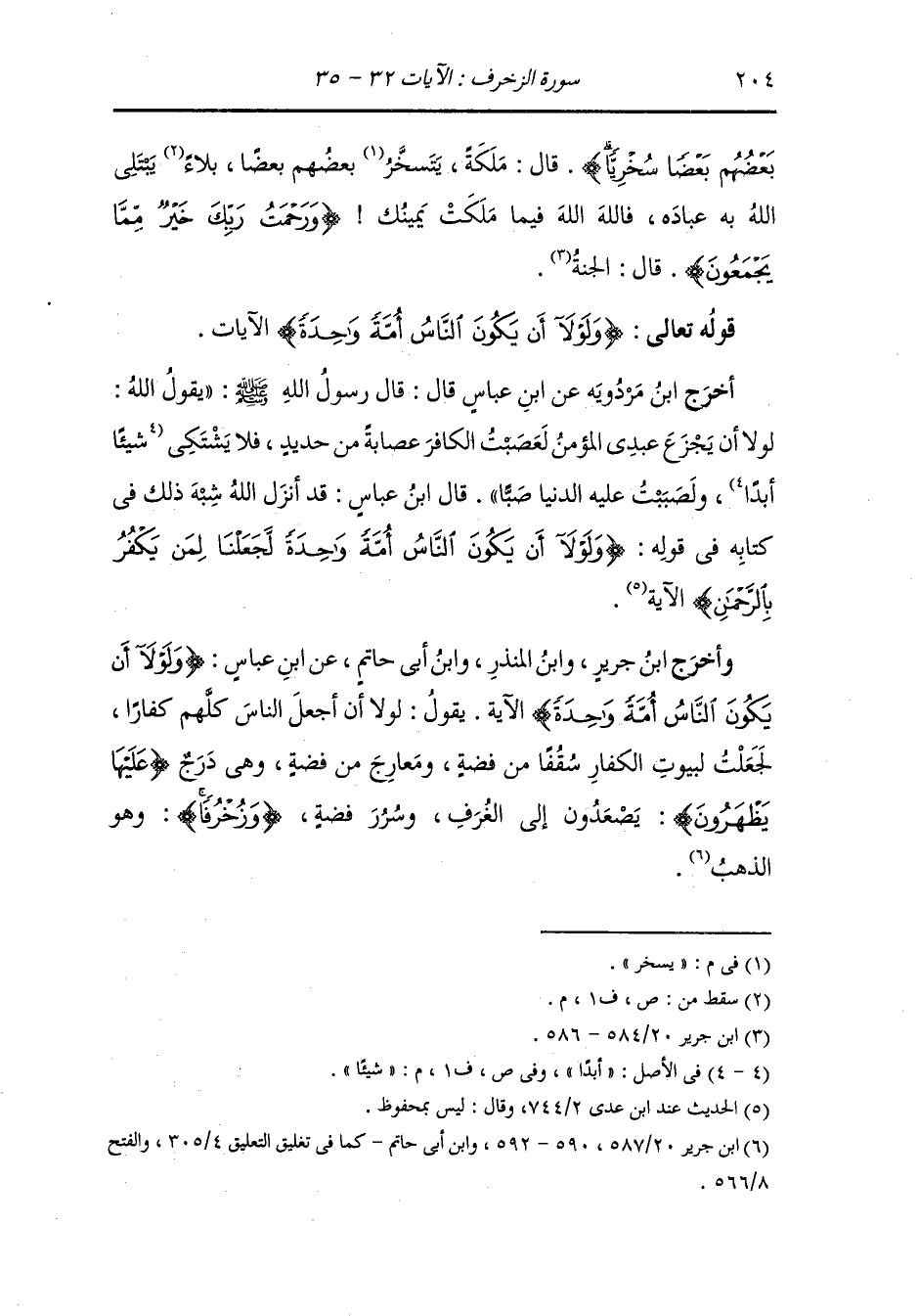 وأخرج عبد الرزاق ، وعَبد بن حُمَيد ، وَابن جَرِير عن قتادة رضي الله عنه {ولولا أن يكون الناس أمة واحدة} قال : لولا أن يكون الناس كفارا {لجعلنا لمن يكفر بالرحمن لبيوتهم سقفا من فضة} قال : السقف أعالي البيوت {ومعارج عليها يظهرون} قال : درج عليها يصعدون {وزخرفا} قال : الذهب {والآخرة عند ربك للمتقين} قال : خصوصا.