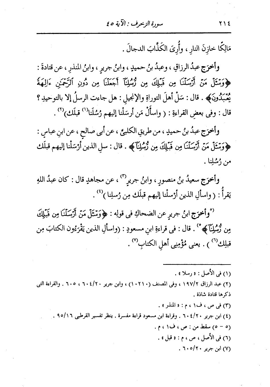 وأخرج ابن جرير عن ابن زيد في قوله : {واسأل من أرسلنا من قبلك من رسلنا} قال : جمعوا له ليلة أسري به ببيت المقدس.