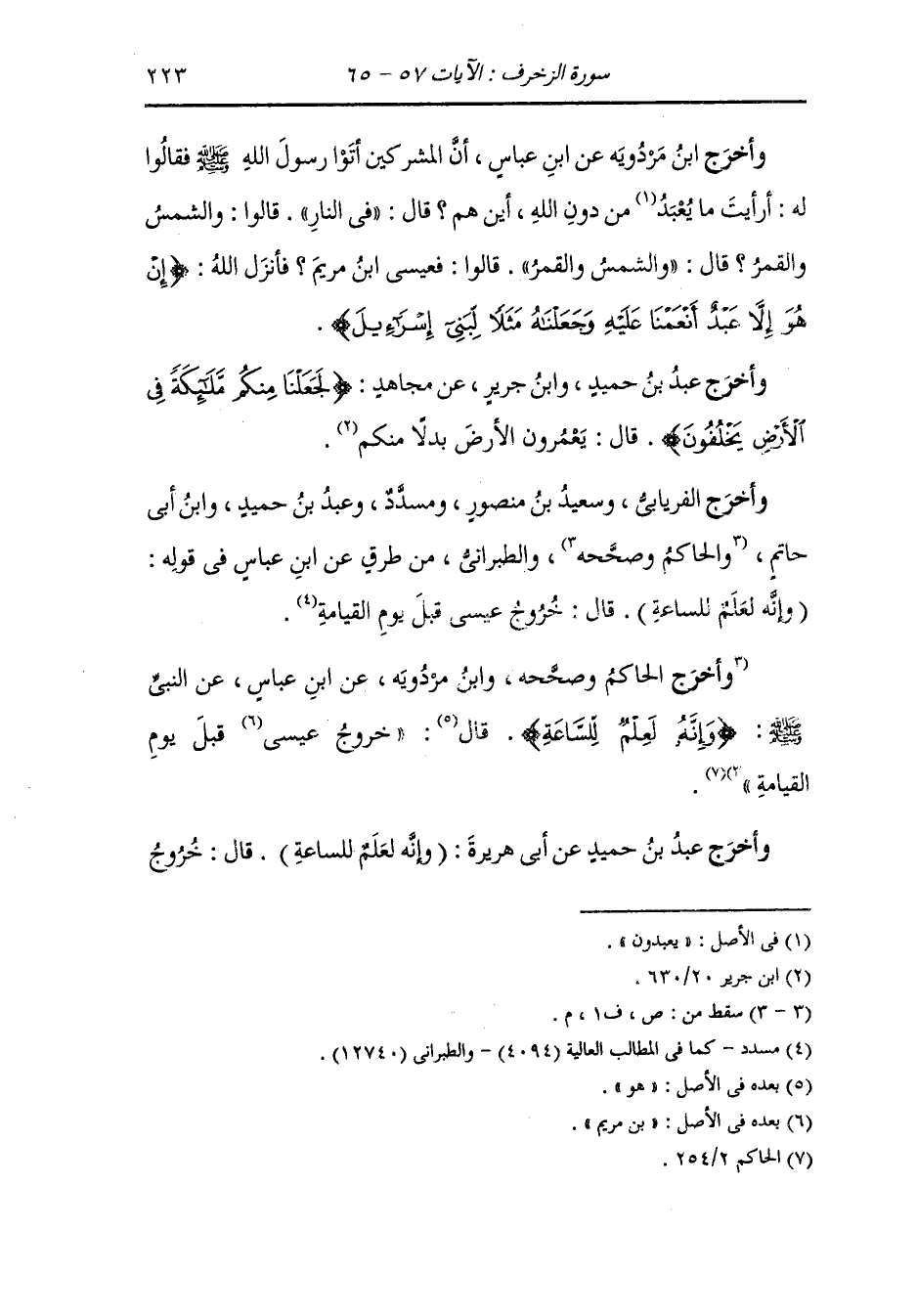 وأخرج عبد الرزاق ، وعَبد بن حُمَيد ، وَابن جَرِير عن قتادة رضي الله عنه {وإنه لعلم للساعة} قال : نزول عيسى علم للساعة وناس يقولون : القرآن علم للساعة.