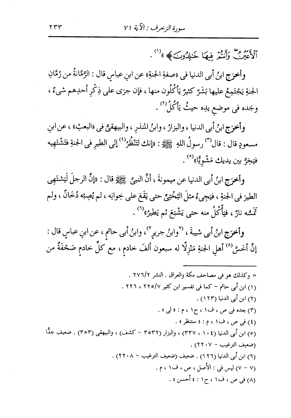 وأخرج أحمد وهناد والدارمي ، وعَبد بن حُمَيد والترمذي وحسنه ، وَابن ماجة ، وَابن المنذر ، وَابن حبان والبيهقي في البعث عن أبي سعيد الخدري قال : قلنا يا رسول الله إن الولد من قرة العين وتمام السرور فهل يولد لأهل الجنة فقال : إن المؤمن إذا اشتهى الولد في الجنة كان حمله ووضعه وسنه في ساعة : كما يشتهي.