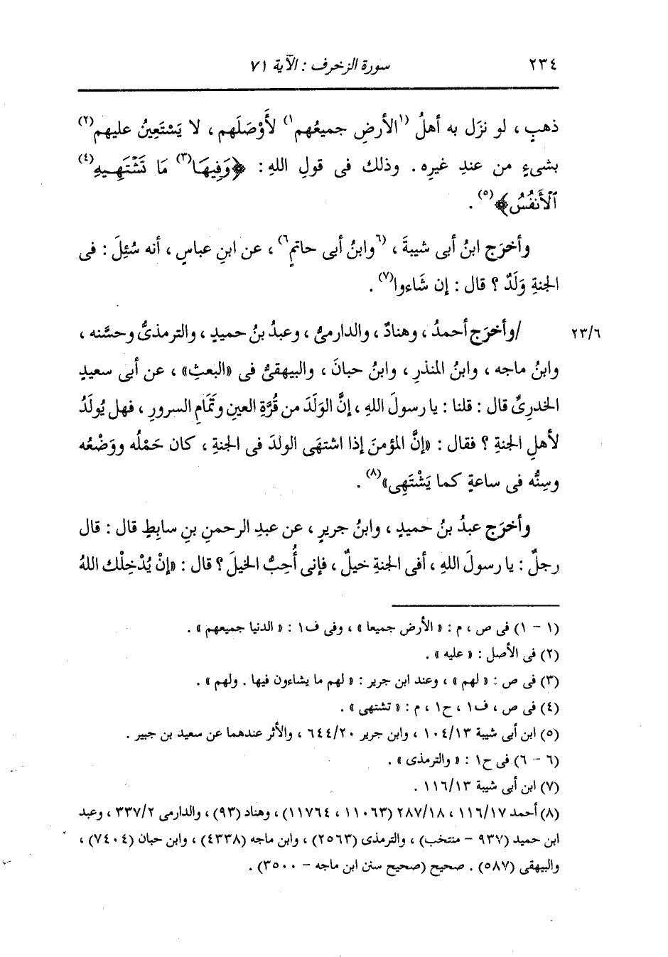 وأخرج ابن أبي شيبة والترمذي ، وَابن مردويه عن بريدة قال : جاء رجل إلى النَّبِيّ صلى الله عليه وسلم فقال : هل في الجنة خيل فإنها تعجبني قال : إن أحببت ذلك أتيت بفرس من ياقوتة حمراء فتطير بك في الجنة حيث شئت فقال له رجل : إن الإبل تعجبني فهل في الجنة من إبل فقال : يا عبد الله إن أدخلت الجنة فلك فيها ما تشتهي نفسك ولذت عينك.