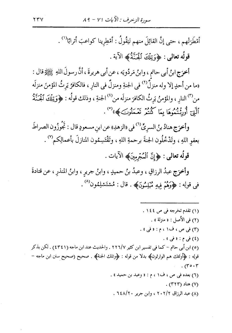وأخرج عبد الرزاق والفريابي ، وعَبد بن حُمَيد ، وَابن أبي الدنيا في صفة النار ، وَابن جَرِير ، وَابن المنذر ، وَابن أبي حاتم والحاكم وصححه والبيهقي في البعث والنشور عن ابن عباس : {ونادوا يا مالك} قال : مكث عنهم ألف سنة ثم يجيبهم {إنكم ماكثون}.