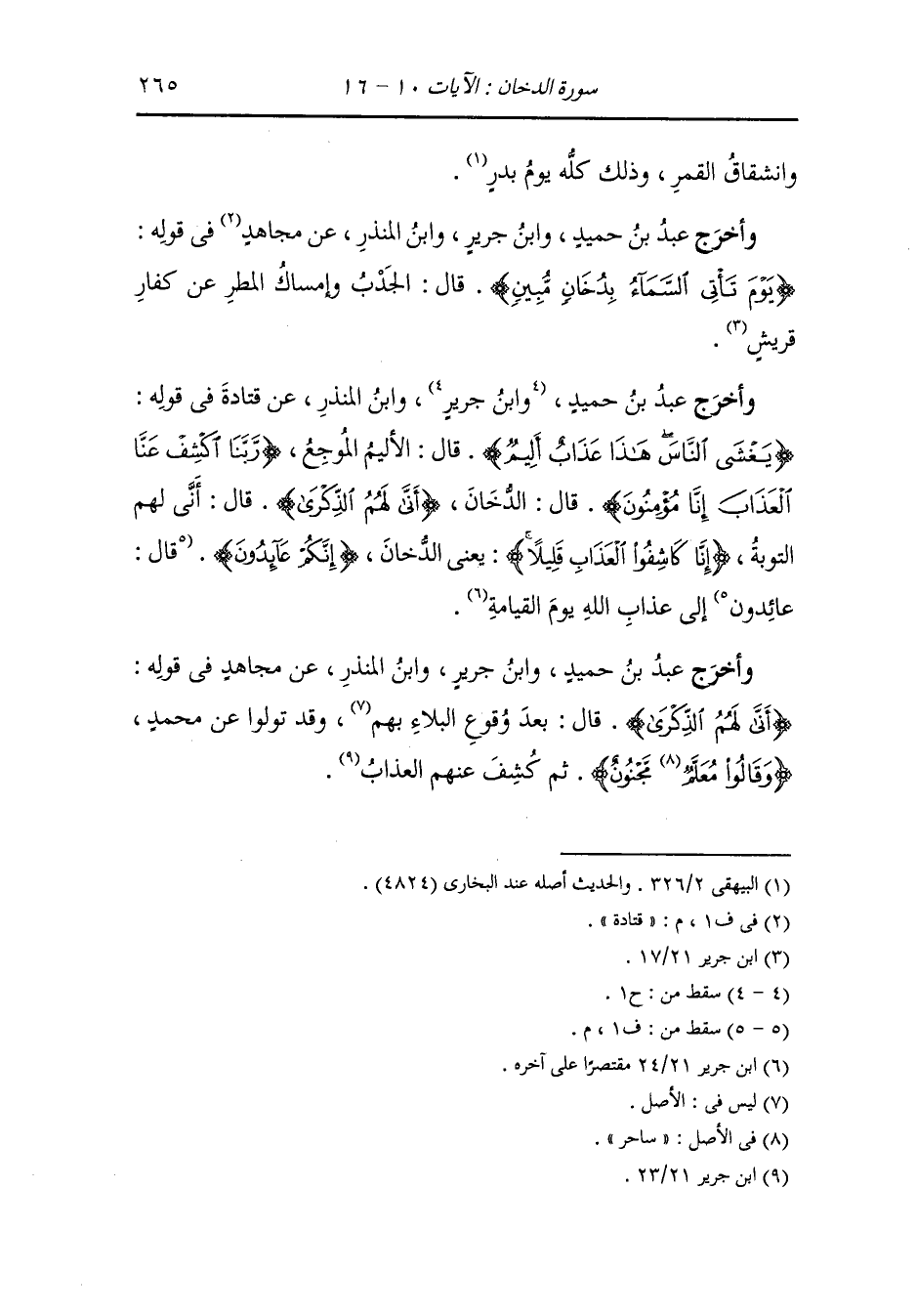 وأخرج عَبد بن حُمَيد ، وَابن جَرِير ، وَابن المنذر ، وَابن أبي حاتم والحاكم بسند صحيح عن ابن أبي مليكة قال : دخلت على ابن عباس رضي الله عنهما فقال : لم أنم هذه الليلة فقلت : لم قال : طلع الكوكب ذو الذنب فخشيت أن يطرق الدخان.