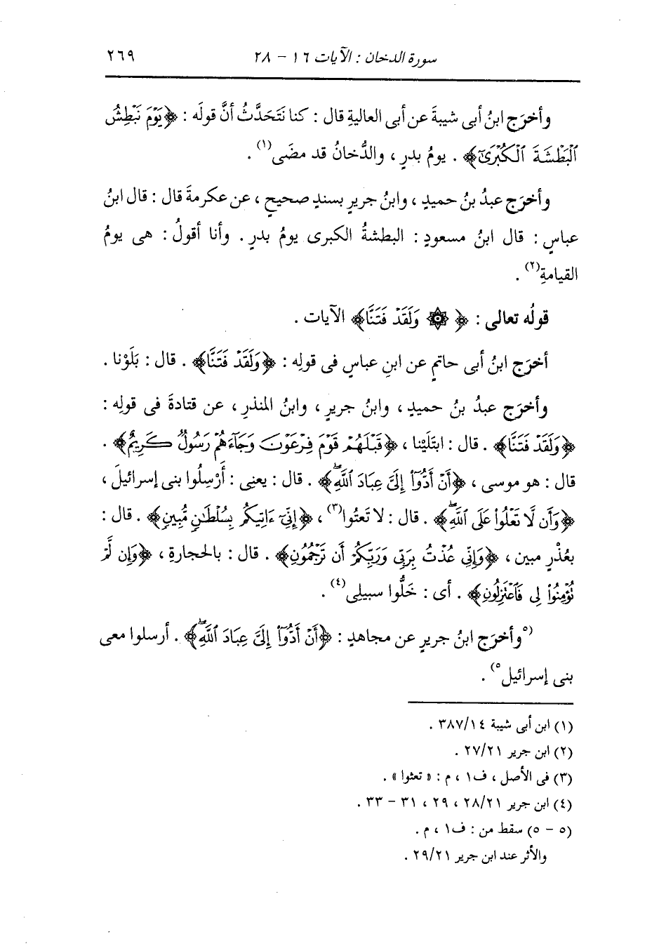 وأخرج ابن جرير ، وَابن أبي حاتم ، وَابن مردويه عن ابن عباس رضي الله عنهما في قوله : {أن أدوا إلي عباد الله} قال : يقول اتبعوني إلى ما أدعوكم إليه من الحق وفي قوله {وأن لا تعلوا} قال : لا تفتروا وفي قوله {أن ترجمون} قال : تشتمون.
