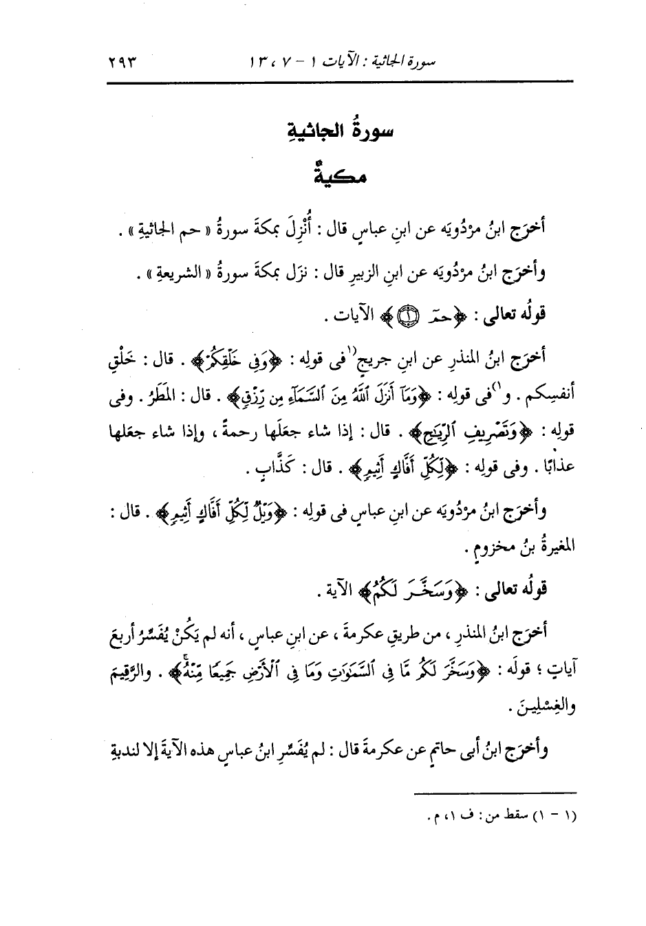 وأخرج عبد الرزاق والفريابي ، وعَبد بن حُمَيد وأبو الشيخ في العظمة من طريق عكرمة عن ابن عباس رضي الله عنهما في قوله {وسخر لكم ما في السماوات وما في الأرض جميعا منه} نور الشمس والقمر.
