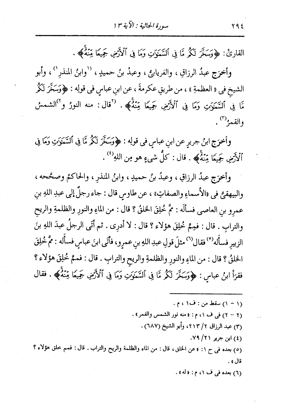 وأخرج أبو داود في تاريخه ، وَابن جَرِير ، وَابن المنذر عن مجاهد رضي الله عنه في قوله {قل للذين آمنوا يغفروا للذين لا يرجون أيام الله} ، قال : اللذين لا يدرون أنعم الله عليهم أم لم ينعم قال سفيان رضي الله عنه : بلغني أنها نسختها آية القتال.