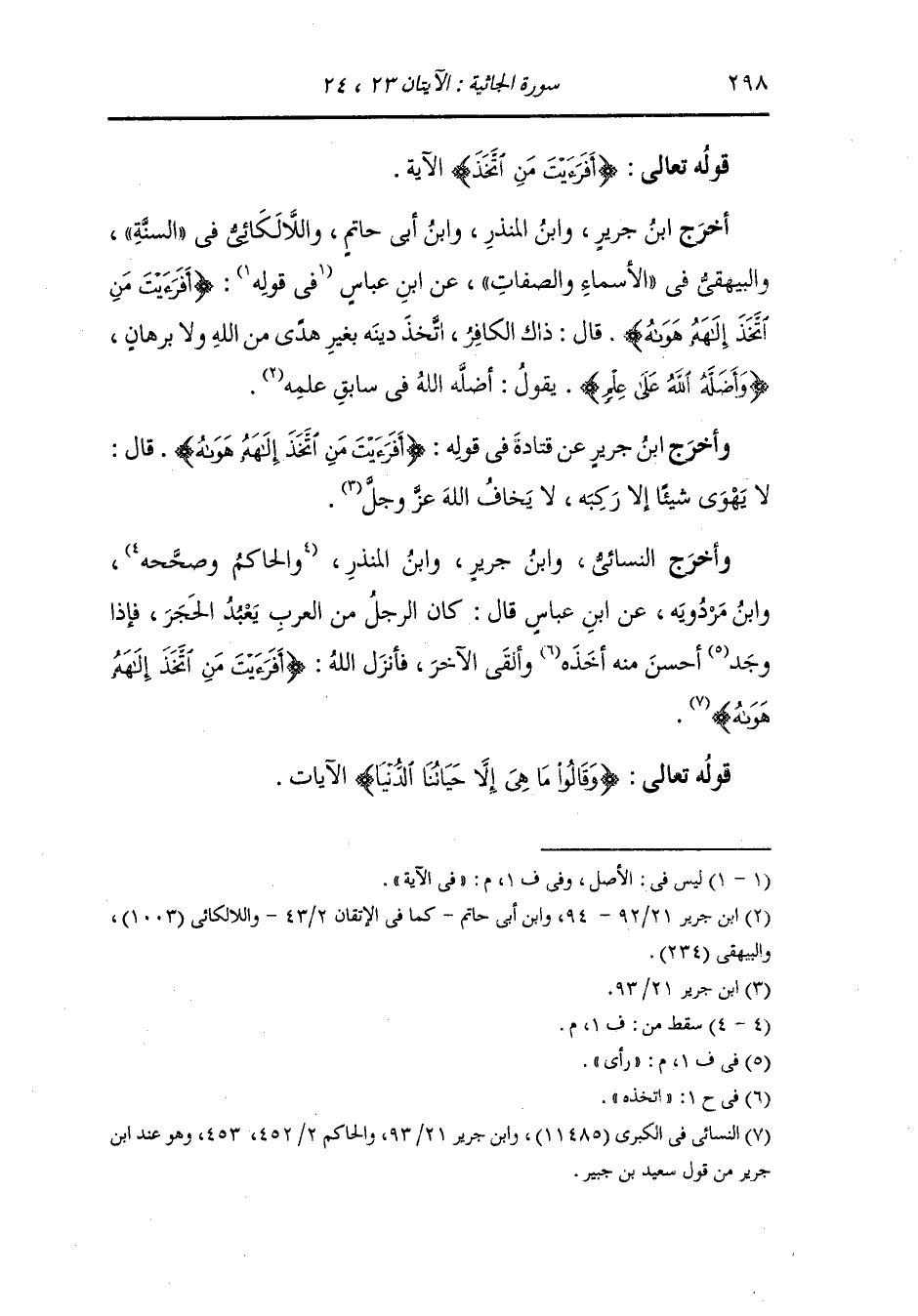 وأخرج أحمد والبخاري ومسلم وأبو داود والنسائي ، وَابن جَرِير ، وَابن مردويه عن أبي هريرة رضي الله عنه : سمعت رسول الله صلى الله عليه وسلم يقول : قال الله عز وجل : (يؤذيني ابن آدم يسب الدهر وأنا الدهر بيدي الأمر أقلب الليل والنهار).