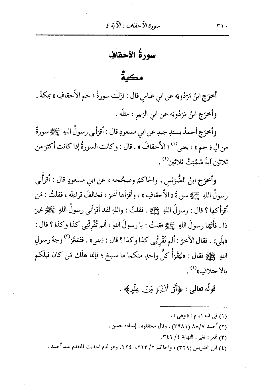 أخرج أحمد ، وَابن المنذر ، وَابن أبي حاتم والطبراني ، وَابن مردويه من طريق أبي سلمة بن عبد الرحمن عن ابن عباس عن النَّبِيّ صلى الله عليه وسلم {أو أثارة من علم} قال : الخط.