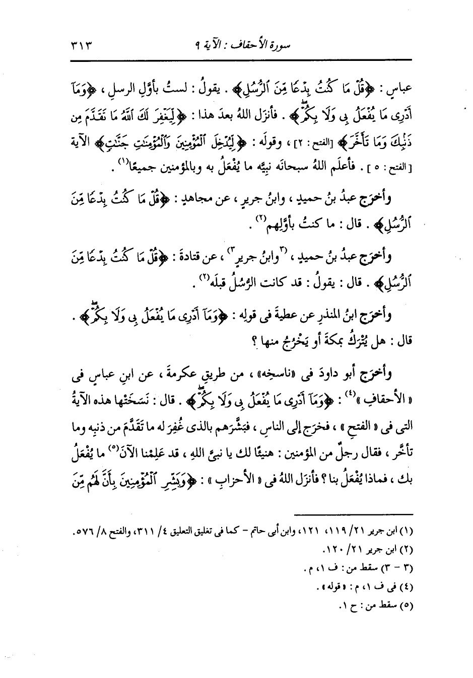 وأخرج الطبراني ، وَابن مردويه عن ابن عباس رضي الله عنهما قال : لما مات عثمان بن مظعون رضي الله عنه قالت : امرأته أو امرأة : هنيئا لك ابن مظعون الجنة ، فنظر إليها رسول الله صلى الله عليه وسلم نظر مغضب وقال : وما يدريك والله إني لرسول الله وما أدري ما يفعل الله بي ، قال : وذلك قبل أن ينزل (ليغفر لك الله ما تقدم من ذنبك وما تأخر) (الفتح الآية 1 - 2) فقالت يا رسول الله صاحبك وفارسك وأنت أعلم