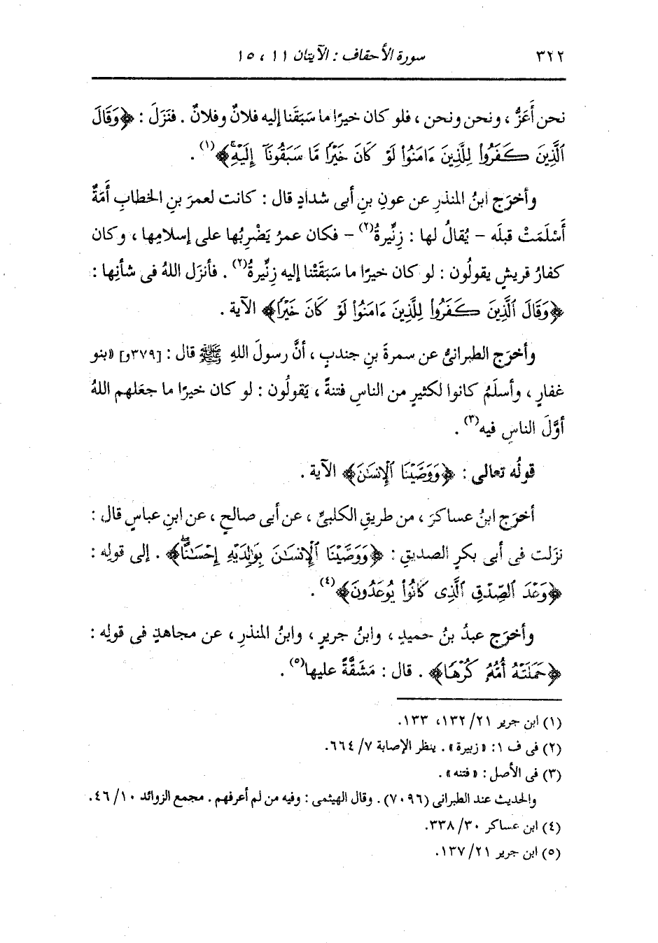 وأخرج ابن المنذر ، وَابن أبي حاتم عن بعجة بن عبد الله الجهني قال : تزوج رجل منا امرأة من جهينة فولدت له تماما لستة أشهر فانطلق زوجها إلى عثمان بن عفان فأمر برجمها فبلغ ذلك عليا رضي الله عنه فأتاه فقال : ما تصنع قال : ولدت تماما لستة أشهر وهل يكون ذلك قال علي رضي الله عنه : أما سمعت الله تعالى يقول {وحمله وفصاله ثلاثون شهرا} وقال : (حولين كاملين) (البقرة الآية 233) فكم تجده بقي إلا ستة أشهر فقال عثمان رضي الله عنه : والله ما فطنت لهذا علي بالمرأة فوجدوها قد فرغ منها ، وكان من قولها لأختها : يا أخيه لا تحزني فو الله ما كشف فرجي أحد قط غيره ، قال : فشب الغلام بعد فاعترف الرجل به وكان أشبه الناس به ، قال : فرأيت الرجل بعد يتساقط عضوا عضوا على فراشه.