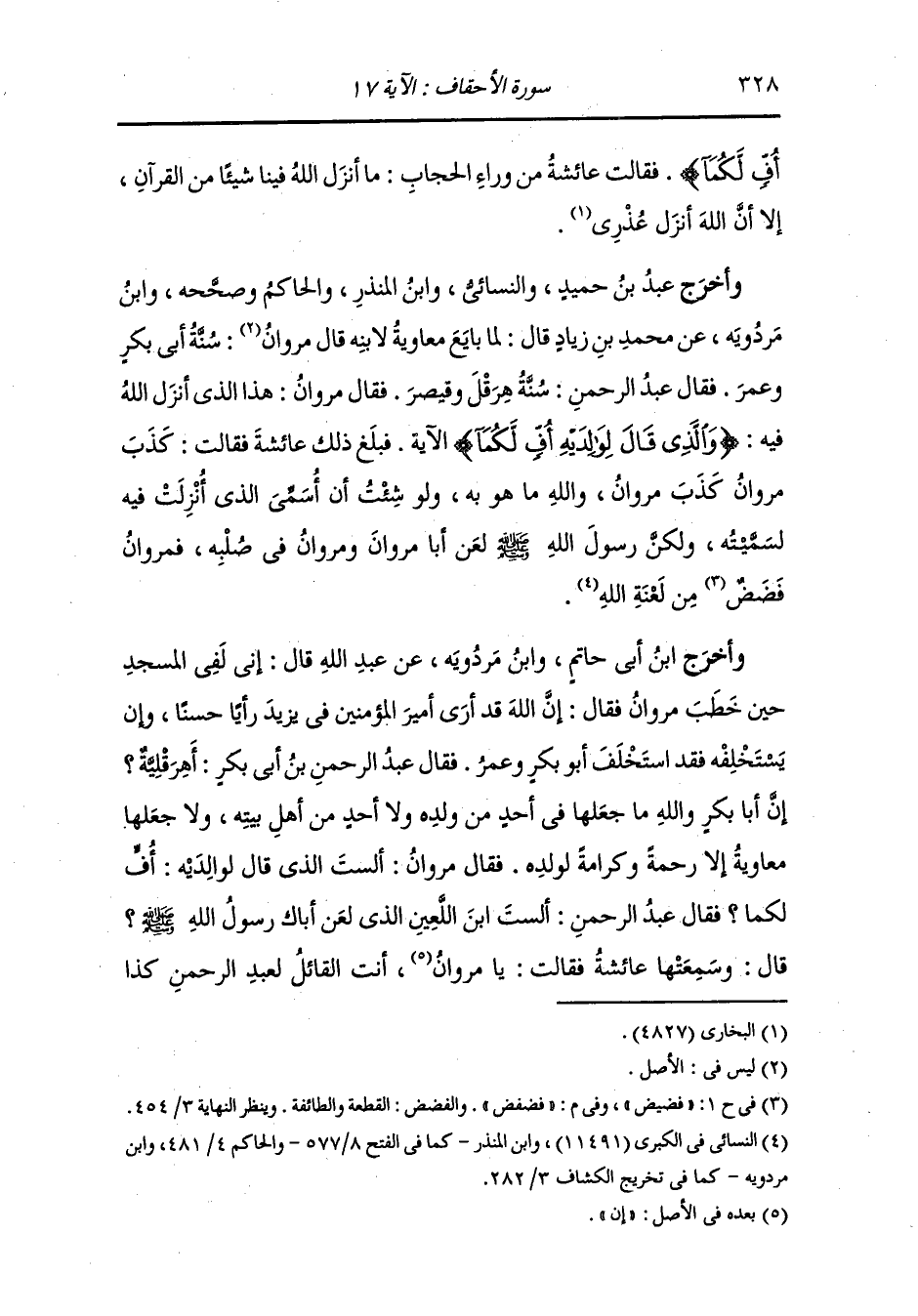 وأخرج ابن جرير عن ابن عباس رضي الله عنهما في {والذي قال لوالديه أف لكما} الآية قال : هذا ابن لأبي بكر.