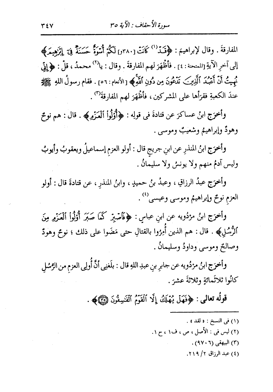 وأخرج عَبد بن حُمَيد ، وَابن جَرِير عن قتادة رضي الله عنه في قوله {فهل يهلك إلا القوم الفاسقون} قال : تعلموا والله ما يهلك على الله إلا هالك مشرك ولى الإسلام ظهره أو منافق صدق بلسانه وخالف بقلبه.