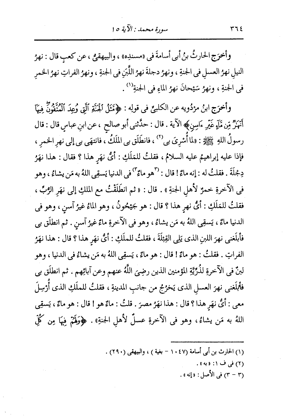وأخرج ابن جرير عن سعد بن طريف رضي الله عنه قال : سألت أبا إسحاق رضي الله عنه عن {ماء غير آسن} قال : سألت عنها الحارث فحدثني أن الماء الذي غير آسن تسنيم قال : بلغني أنه لا تمسه يد وأنه يجيء الماء هكذا حتى يدخل فمه والله تعالى أعلم.