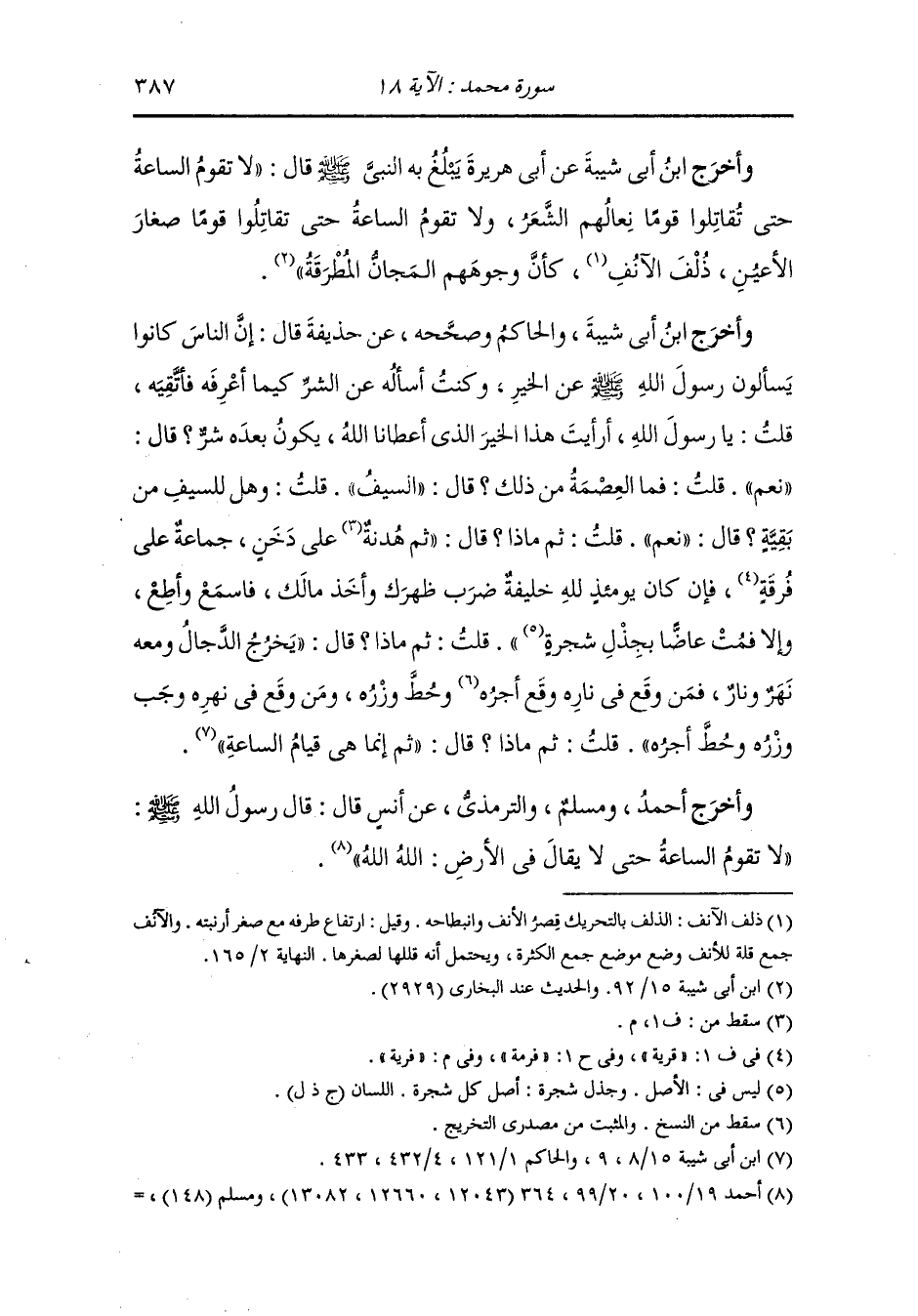 وأخرج الحاكم وصححه عن أنس رضي الله عنه مرفوعا والذي نفسي بيده لا تقوم الساعة على رجل يقول لا إله إلا الله ويأمر بالمعروف وينهى عن المنكر).