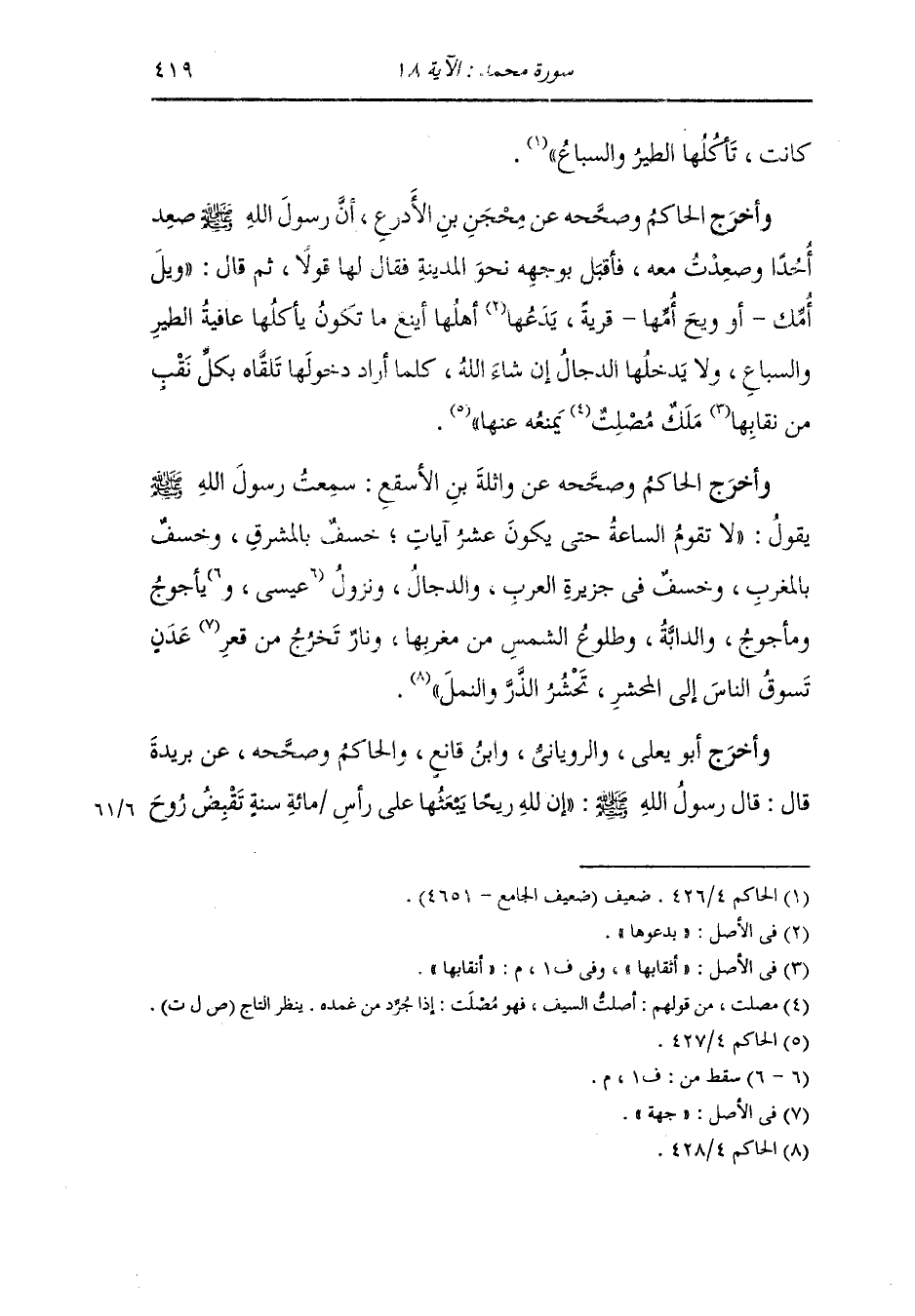 وأخرج الحاكم وصححه عن عقبة بن عامر رضي الله عنه : سمعت رسول الله صلى الله عليه وسلم يقول : لا تزال عصابة من أمتي يقاتلون على أمر الله ظاهرين على العدو لا يضرهم من خالفهم حتى تأتيهم الساعة وهم على ذلك فقال