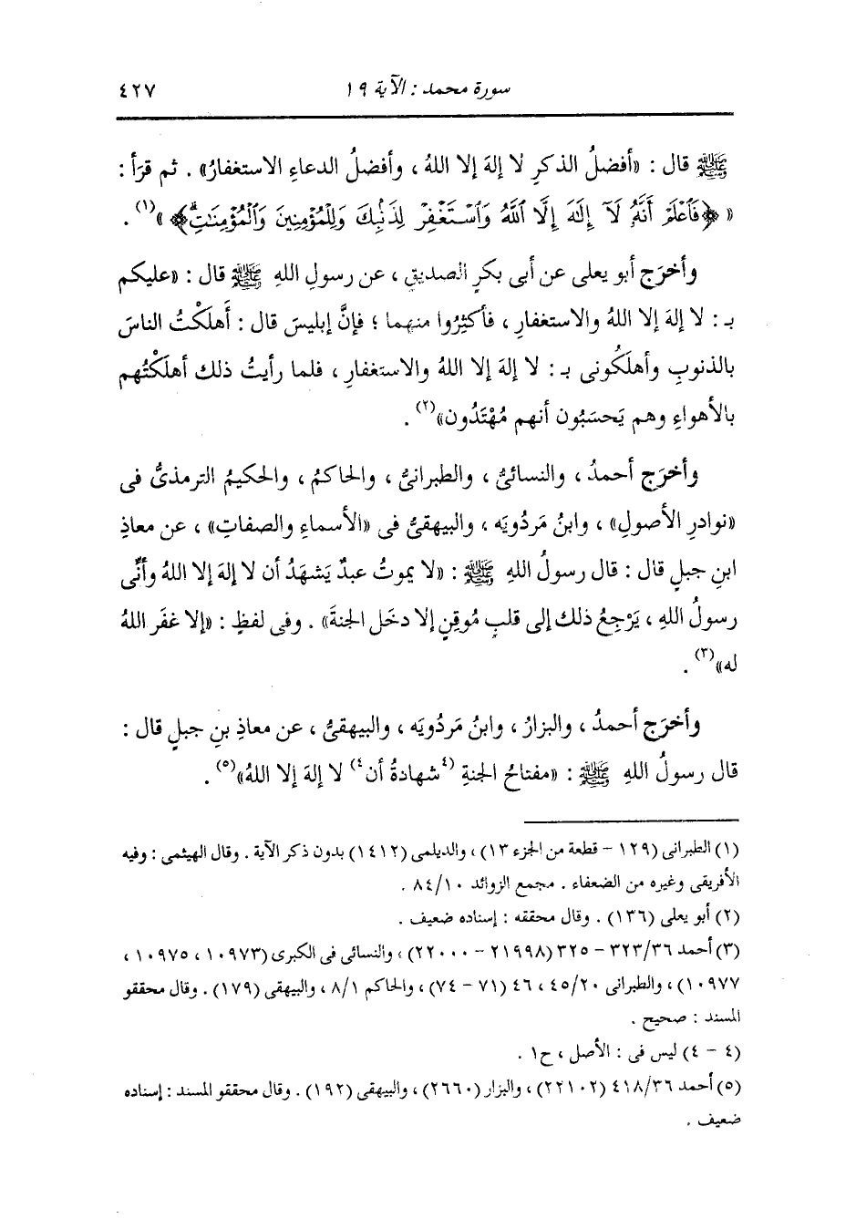 وأخرج أحمد عن أنس رضي الله عنه قال : قال رسول الله صلى الله عليه وسلم لمعاذ بن جبل : اعلم أنه من مات يشهد أن لا إله إلا الله دخل الجنة.