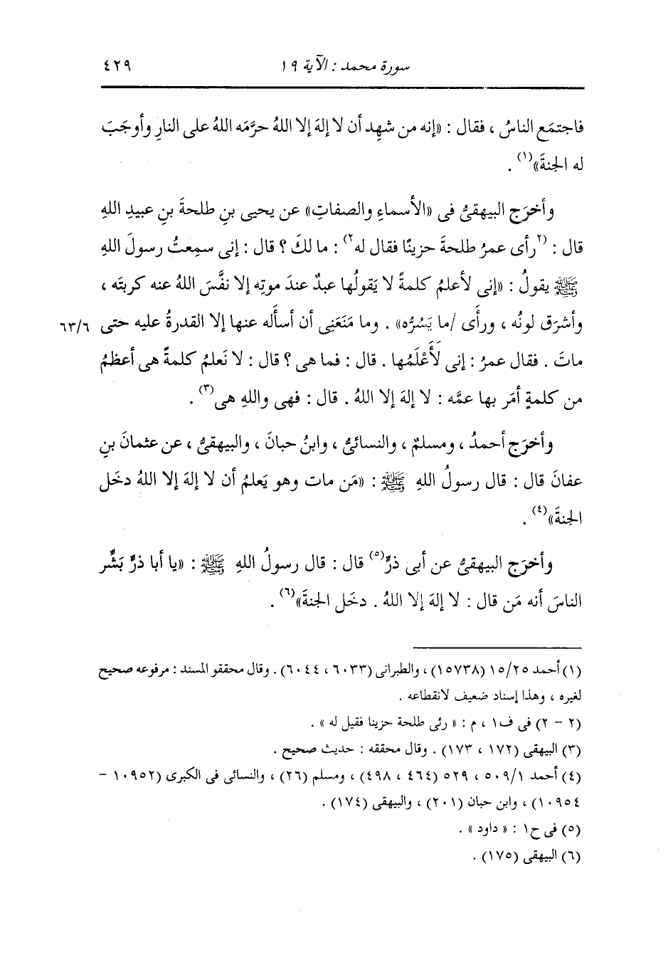 وأخرج أحمد وأبو داود والطبراني والحاكم ومسلم والترمذي والنسائي ، وَابن خزيمة ، وَابن حبان والبيهقي عن عبادة بن الصامت رضي الله عنه : سمعت رسول الله صلى الله عليه وسلم يقول : من شهد أن لا إله إلا الله وأن محمدا رسول الله حرم الله عليه النار.