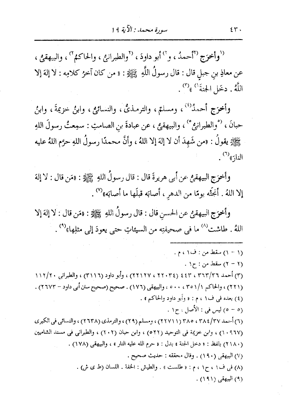أخرج عبد الرزاق ، وعَبد بن حُمَيد والترمذي وصححه ، وَابن المنذر ، وَابن أبي حاتم ، وَابن مردويه والبيهقي في شعب الإيمان عن أبي هريرة رضي الله عنه في قوله {واستغفر لذنبك وللمؤمنين والمؤمنات} قال رسول الله صلى الله عليه وسلم : إني لأستغفر الله في اليوم سبعين مرة.