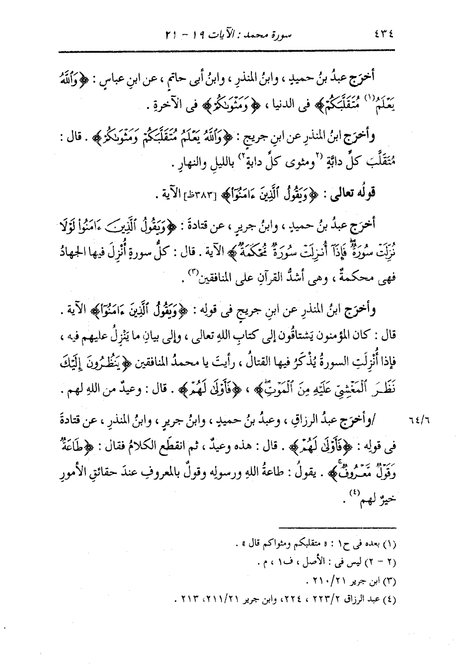وأخرج الفريابي ، وعَبد بن حُمَيد ، وَابن جَرِير عن مجاهد رضي الله عنه {طاعة وقول معروف} قال : أمر الله عز وجل بذلك المنافقين فإذا عزم الأمر قال : جد الأمر.
