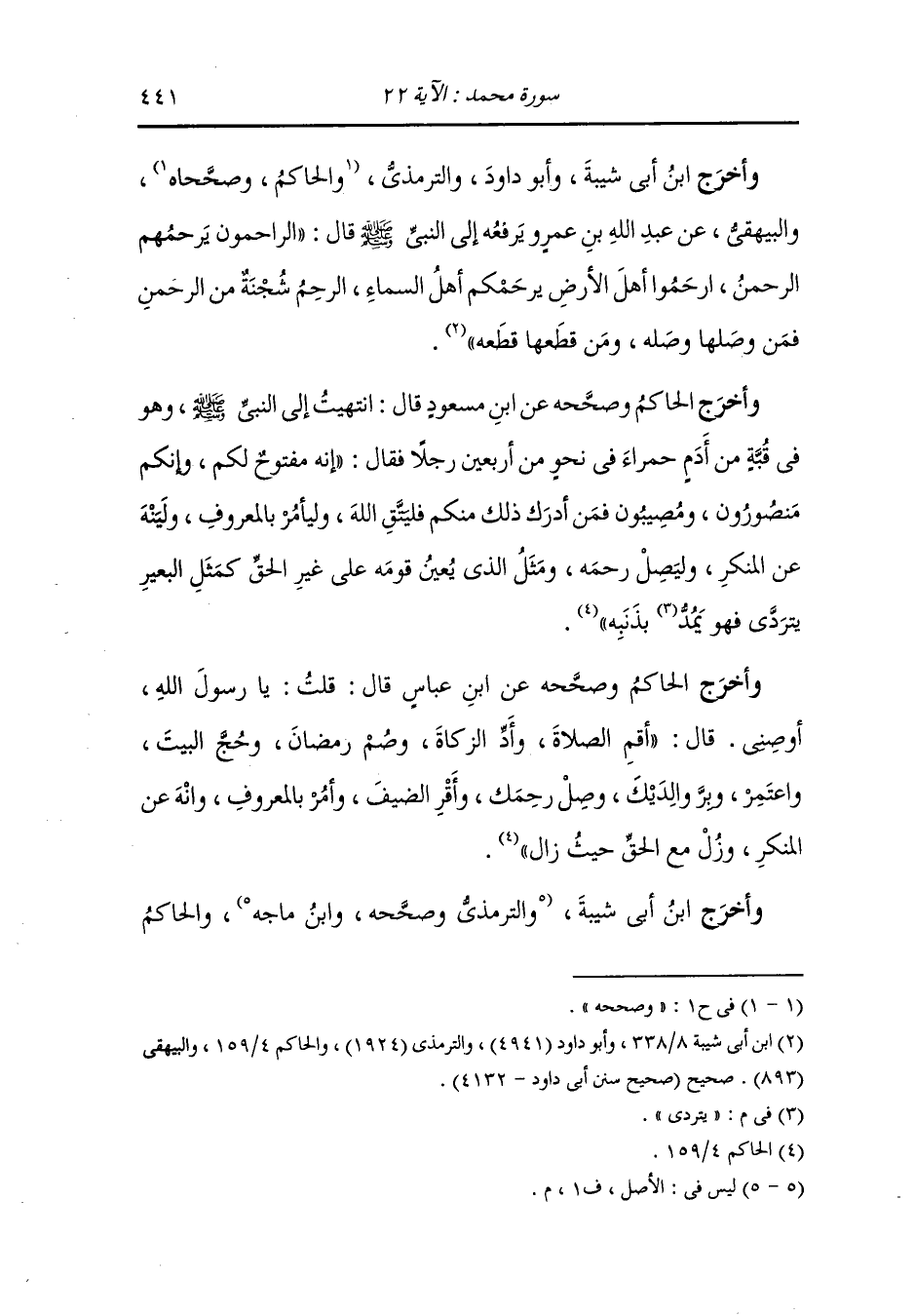 وأخرج أحمد والحاكم وصححه والبيهقي في الأسماء والصفات ، وَابن نصر في