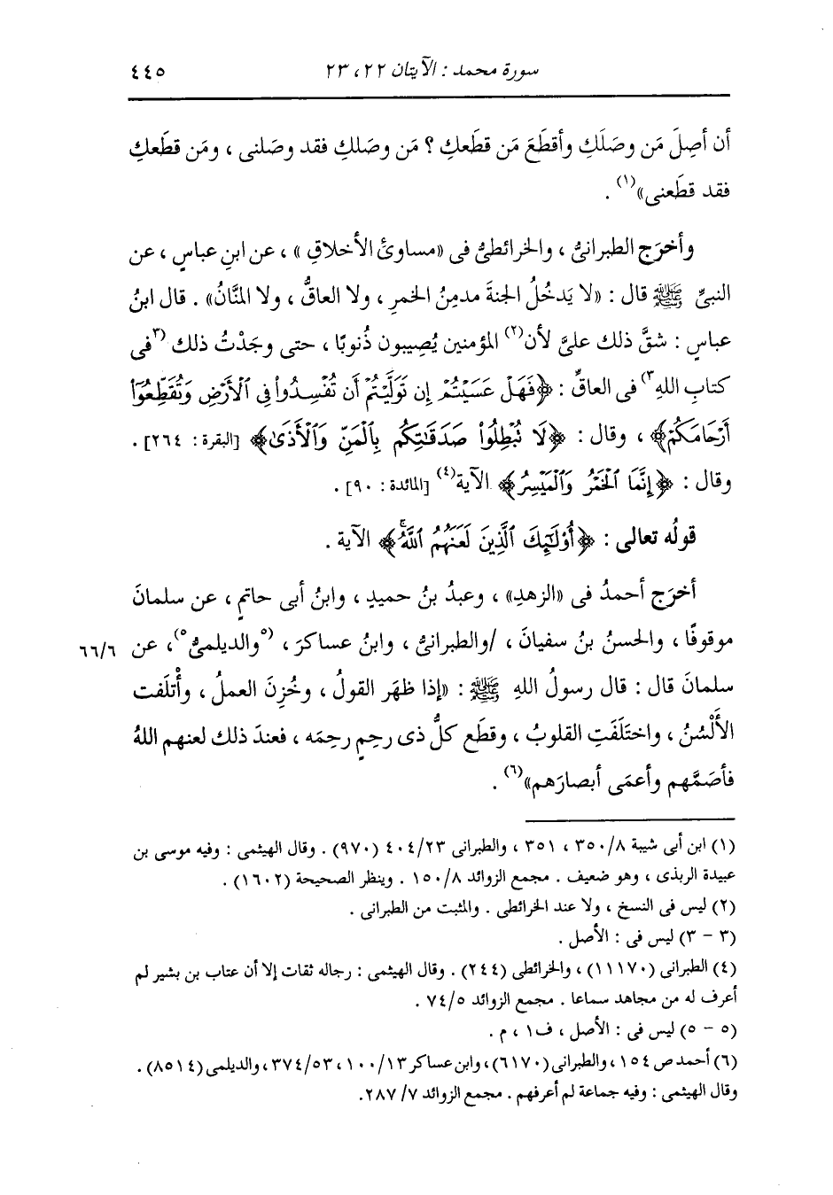 وأخرج ابن أبي الدنيا في كتاب العلم عن الحسن رضي الله عنه قال : قال رسول الله صلى الله عليه وسلم : إذا الناس أظهروا العلم وضيعوا العمل وتحابوا بالألسن وتباغضوا بالقلوب وتقاطعوا في الأرحام لعنهم الله عند ذلك {فأصمهم وأعمى أبصارهم} ، أما قوله تعالى : {أفلا يتدبرون القرآن أم على قلوب أقفالها}.