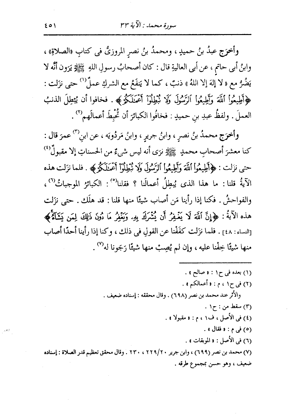 وأخرج عَبد بن حُمَيد ، وَابن جَرِير عن مجاهد رضي الله عنه {فلا تهنوا} قال : لا تضعفوا {وأنتم الأعلون} قال : الغالبون {ولن يتركم} قال : لن ينقصكم.