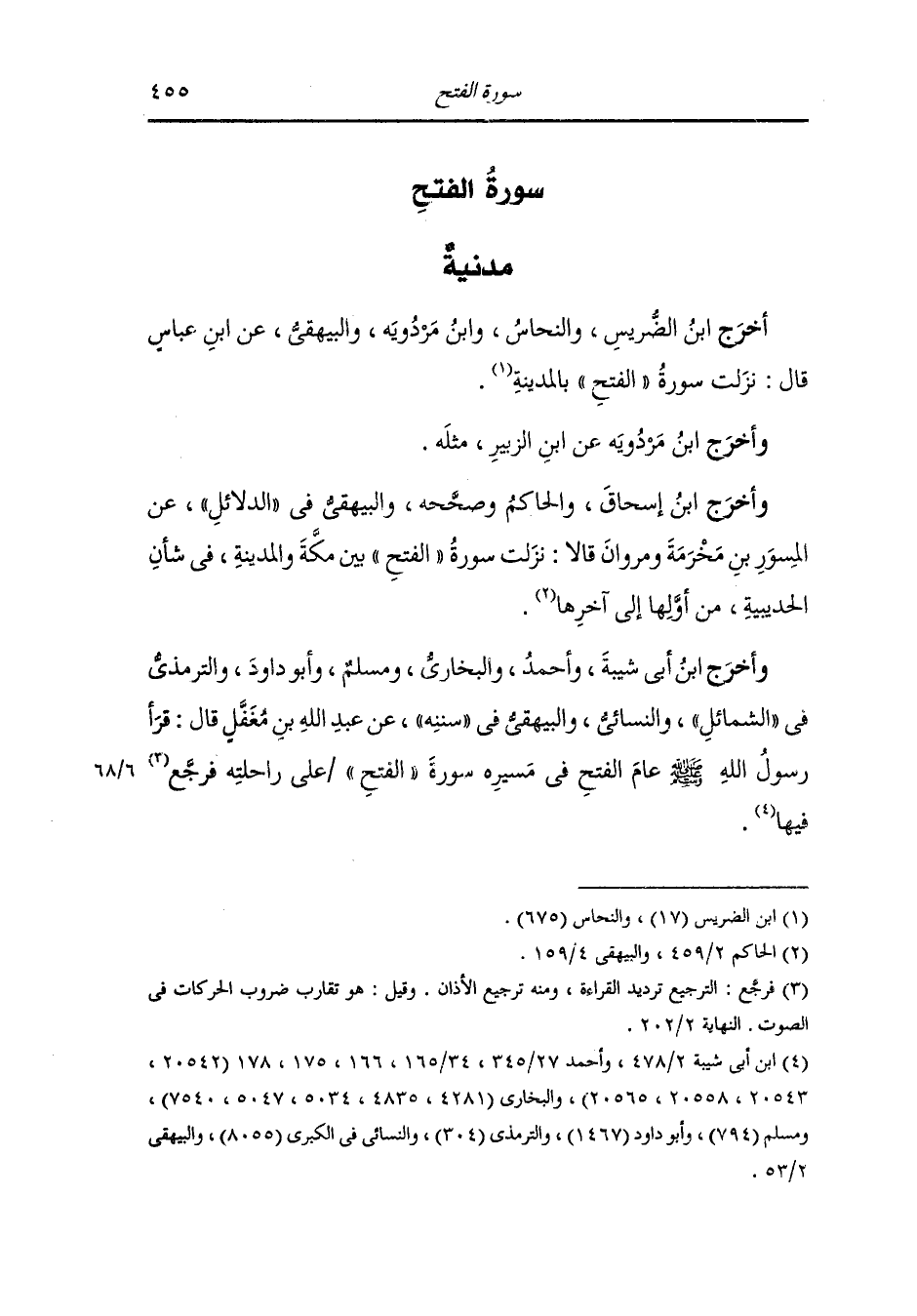 أَخرَج أحمد والبخاري والترمذي والنسائي ، وَابن حبان ، وَابن مردويه عن عمر بن الخطاب رضي الله عنه قال : كنا مع رسول الله صلى الله عليه وسلم في سفر فسألته عن شيء ثلاث مرات فلم يرد علي فقلت في نفسي : ثكلتك أمك يا ابن الخطاب نزرت رسول الله صلى الله عليه وسلم ثلاث مرات فلم يرد عليك فحركت بعيري ثم تقدمت أمام الناس وخشيت