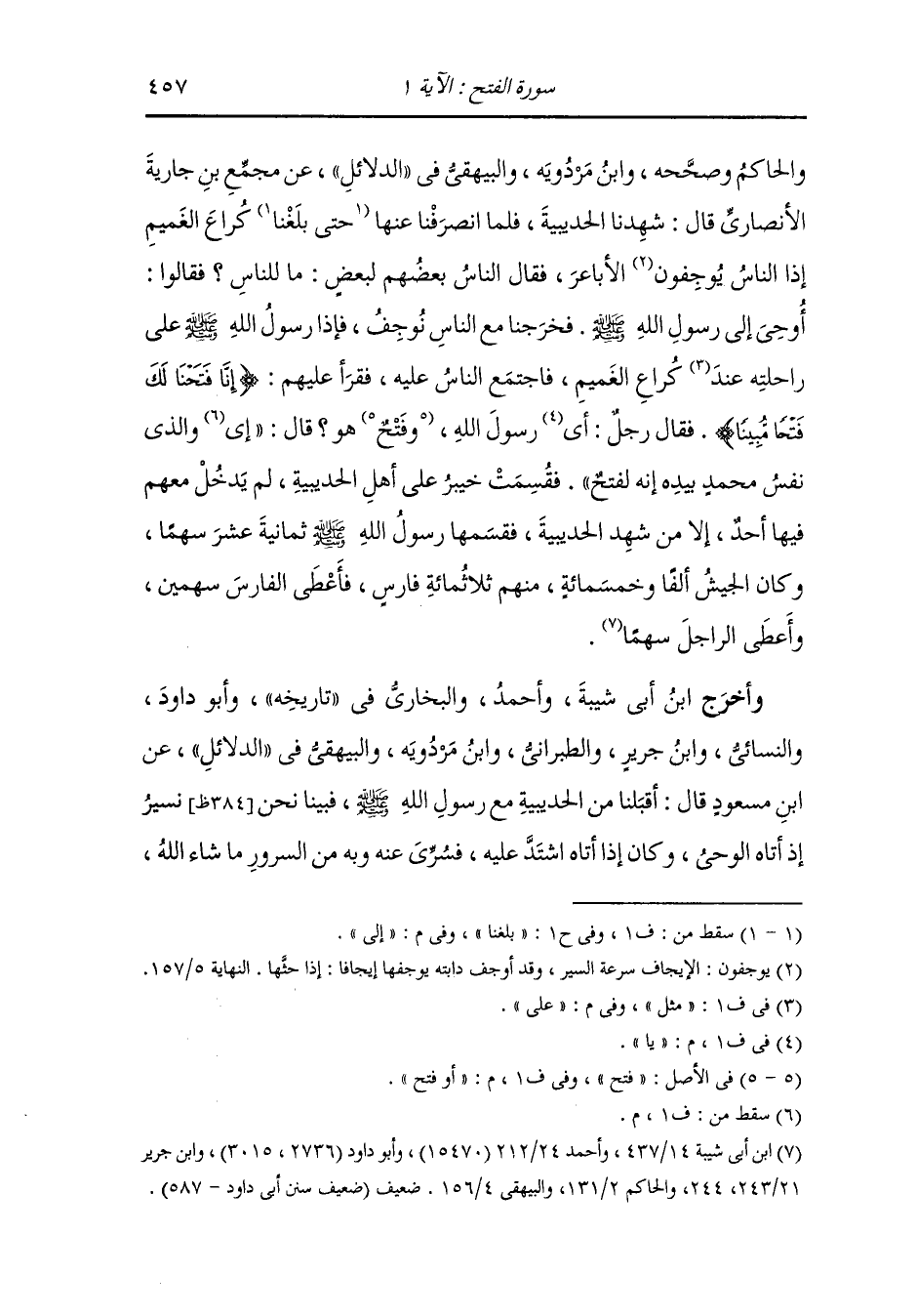 وأخرج البخاري ، وَابن جَرِير ، وَابن مردويه عن البراء رضي الله عنه قال : تعدون أنتم الفتح فتح مكة وقد كان فتح مكة فتحا ونحن نعد الفتح بيعة الرضوان يوم الحديبية ، كنا مع رسول الله صلى الله عليه وسلم أربع عشرة مائة والحديبية بئر فنزحناها فلم نترك فيها قطرة فبلغ ذلك رسول الله صلى الله عليه وسلم فأتاها فجلس على شفيرها ثم دعا بإناء