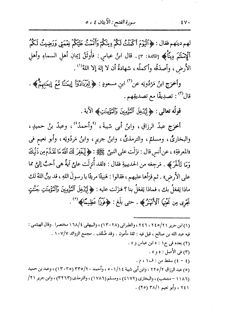 وأخرج سعيد بن منصور ، وعَبد بن حُمَيد ، وَابن جَرِير ، وَابن مردويه عن عكرمة رضي الله عنه قال : لما نزلت هذه الآية {إنا فتحنا لك فتحا مبينا} الآية قال أصحاب رسول الله صلى الله عليه وسلم : هنيئا لك ما أعطاك ربك هذا لك فما لنا فأنزل الله {ليدخل المؤمنين والمؤمنات} إلى آخر الآية.