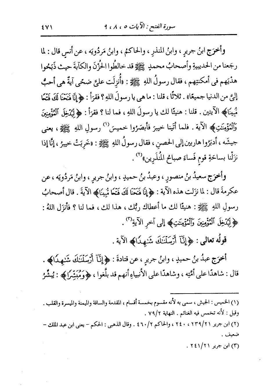 وأخرج ابن أبي حاتم والحاكم ، وَابن مردويه والضياء في المختارة عن ابن عباس رضي الله عنهما في قوله {وتعزروه} قال : تضربوا بين يديه بالسيف.