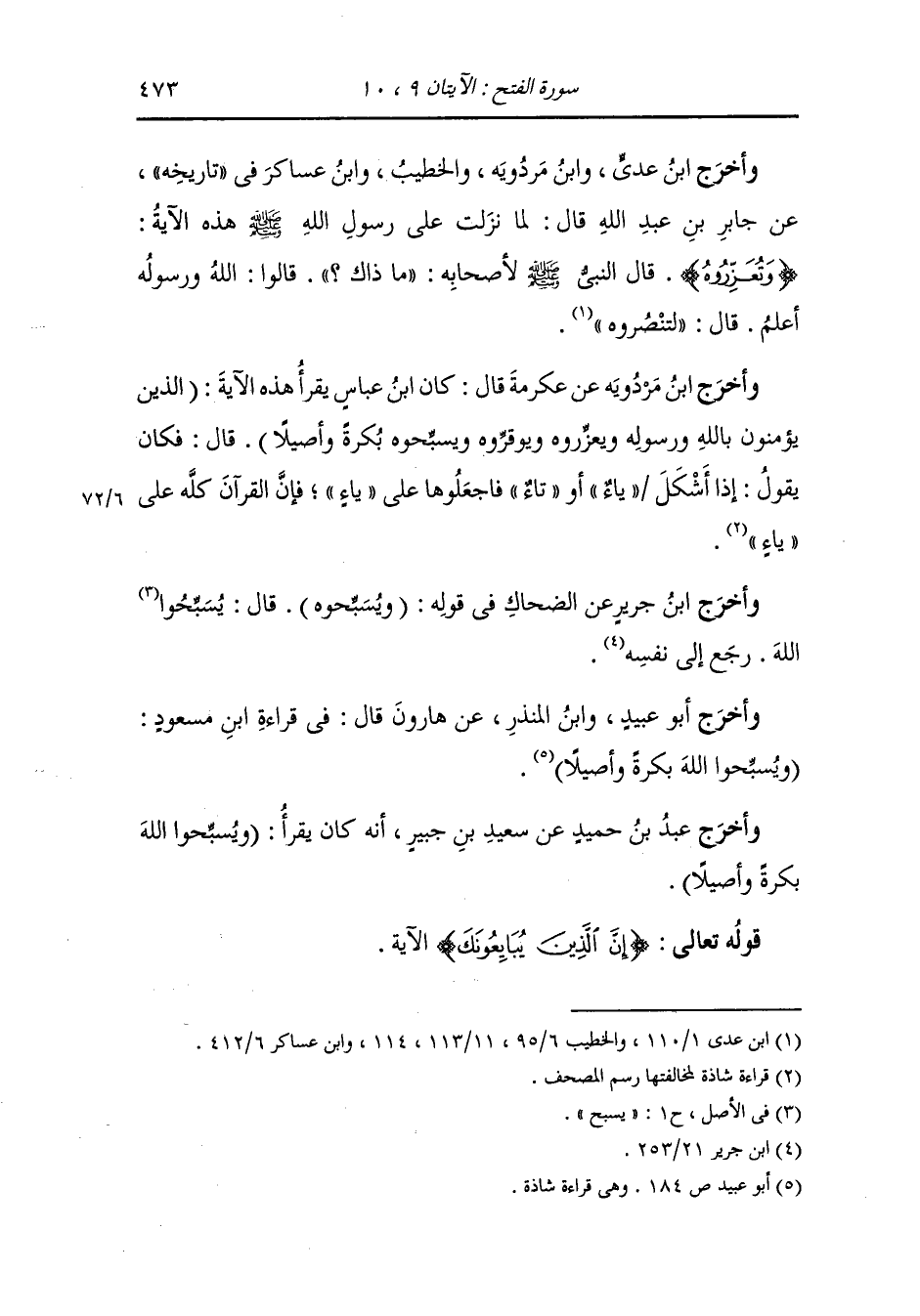أخرج الفريابي ، وعَبد بن حُمَيد ، وَابن جَرِير ، وَابن المنذر ، وَابن أبي حاتم عن مجاهد رضي الله عنه في قوله {إن الذين يبايعونك} قال : يوم الحديبية.