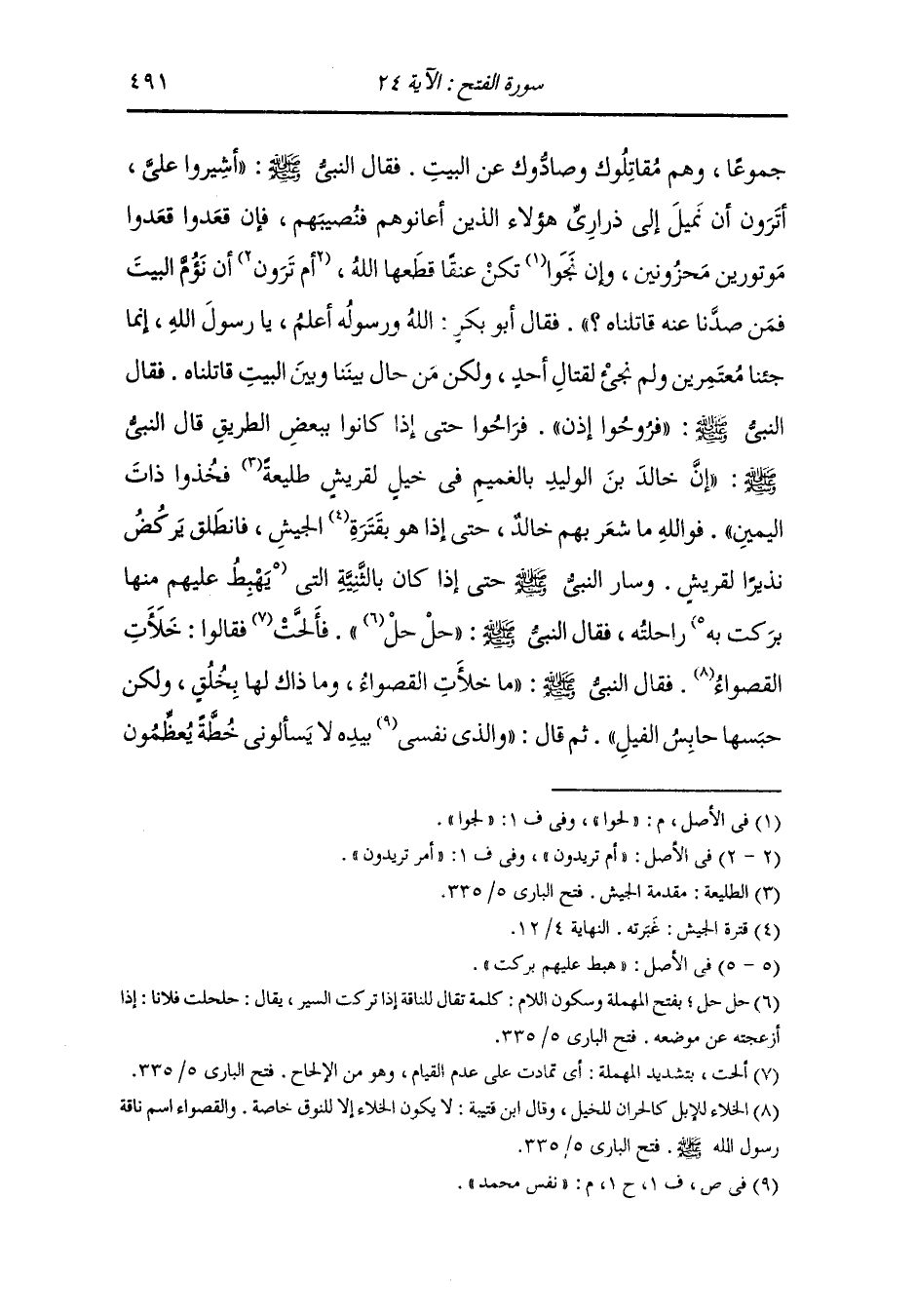 فيها حرمات الله إلا أعطيتهم إياها ، ثم زجرها فوثبت فعدل بهم حتى نزل بأقصى الحديبية على ثمد قليل الماء إنما يتربضه الناس تربضا فلم يلبث الناس أن نزحوه فشكي إلى رسول الله صلى الله عليه وسلم العطش فانتزع سهما من كنانته ثم أمرهم أن يجعلوه فيه ، قال : فو الله ما زال يجيش لهم بالري حتى صدروا عنه ، فبينما هم كذلك إذ جاء بديل بن ورقاء الخزاعي في نفر من قومه من خزاعة وكانوا عيبة نصح رسول الله صلى الله عليه وسلم من أهل تهامة فقال : إني قد تركت كعب بن لؤي وعامر بن لؤي نزلوا أعداد مياه الحديبية معهم العوذ المطافيل وهم مقاتلوك وصادوك عن البيتز فقال رسول الله صلى الله عليه وسلم : إنا لم نجيء لقتال أحد ولكن جئنا معتمرين وإن قريشا قد نهكتهم الحرب وأضرت بهم فإن شاؤوا ماددتهم مدة ويخلوا بيني وبين الناس فإن أظهر فإن شاؤوا أن