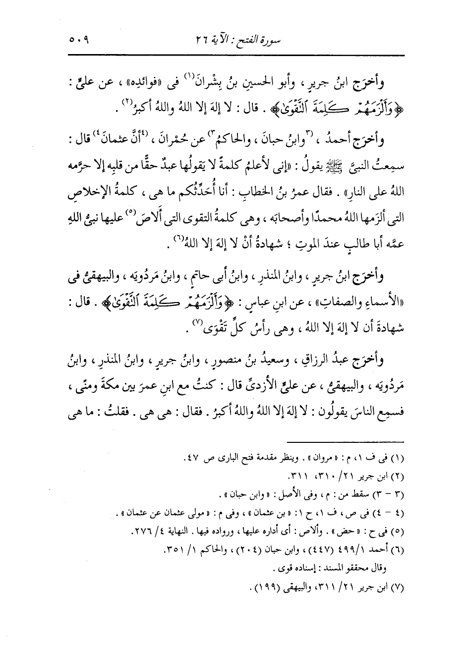 وأخرج ابن جرير عن عمرو بن ميمون {وألزمهم كلمة التقوى} قال : لا إله إلا الله.